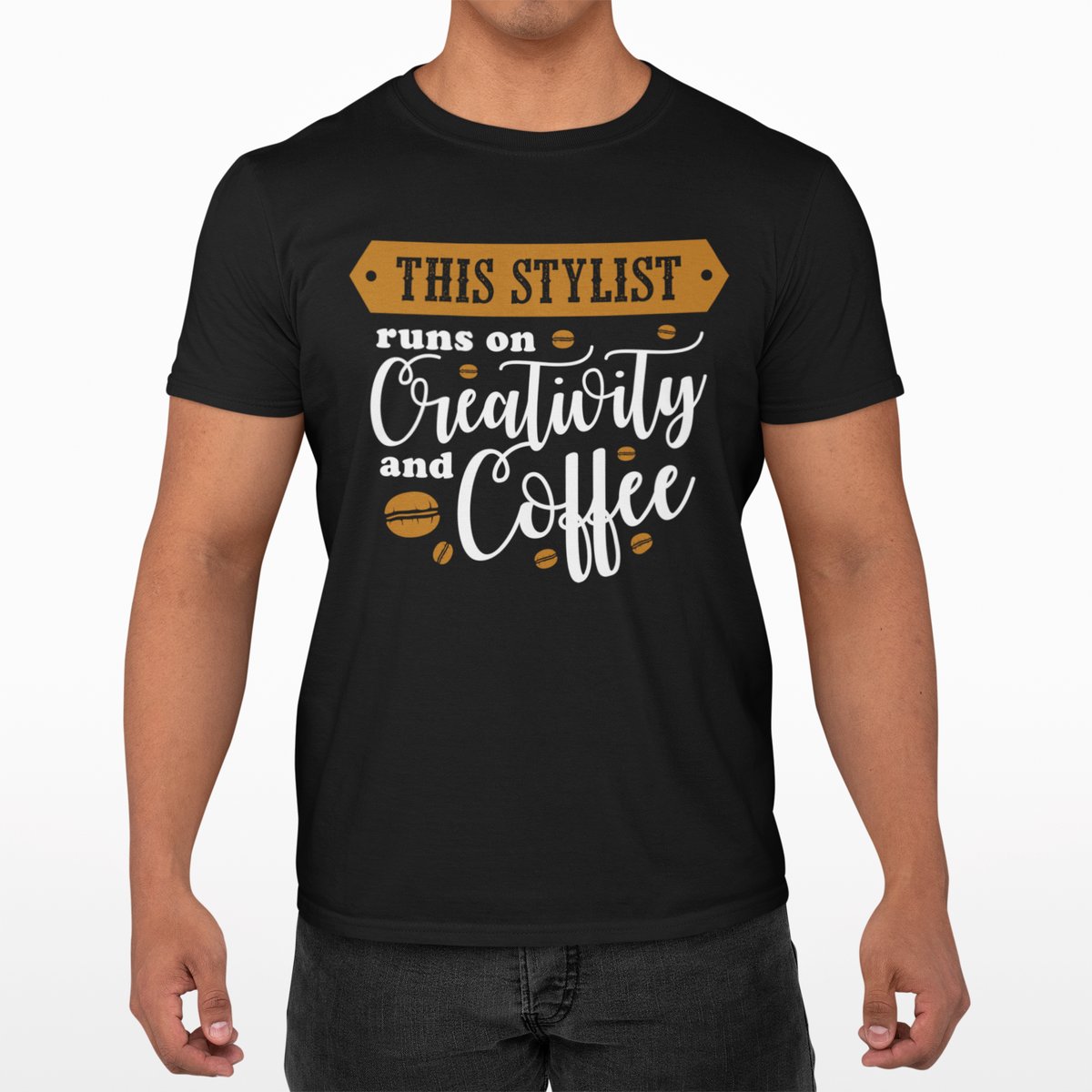 This stylist runs on creativity and Coffee - Black - printed t shirt - comfortable round neck cotton.