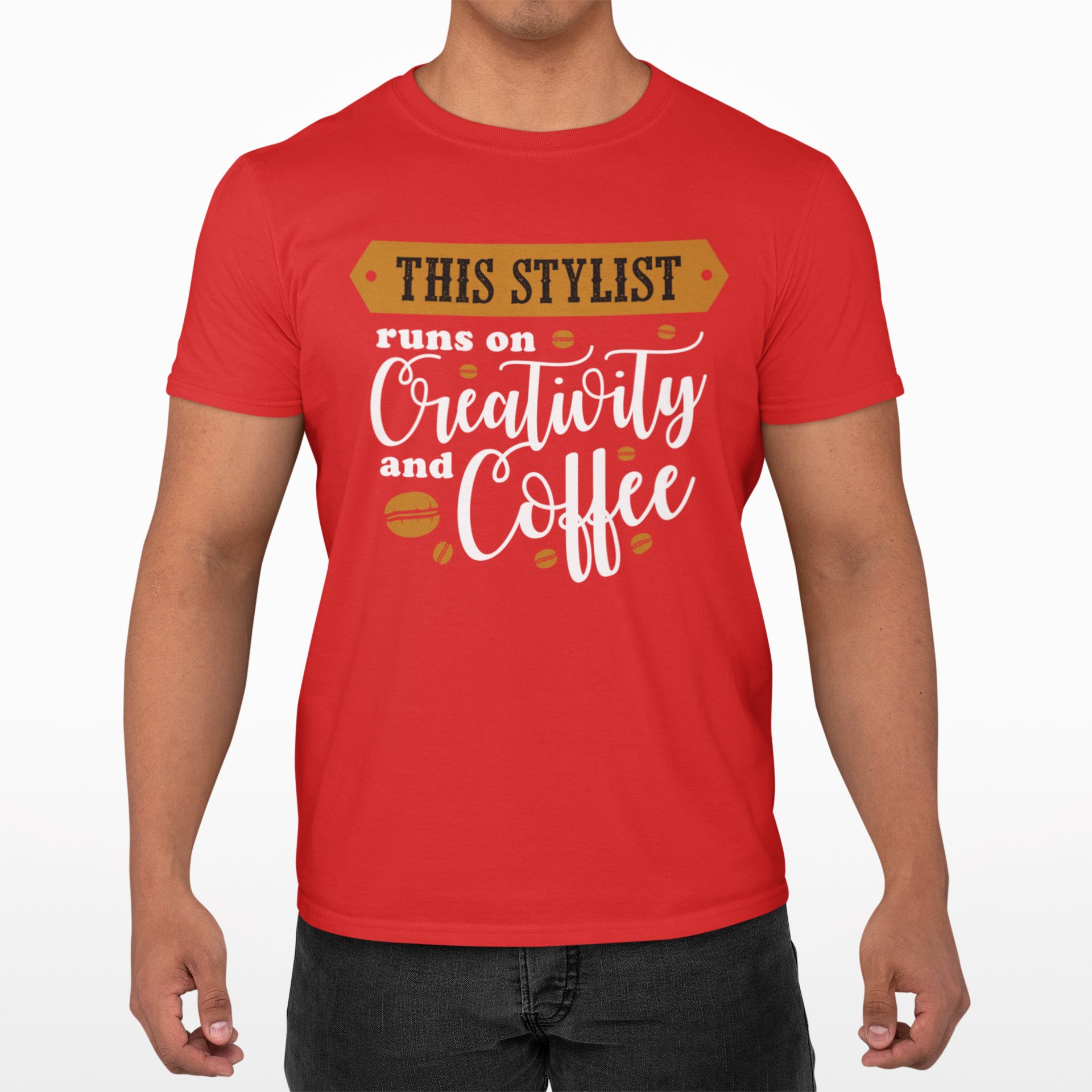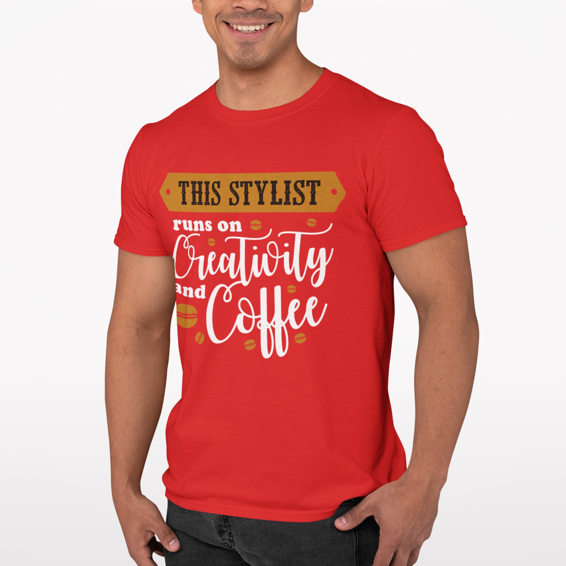 This stylist runs on creativity and Coffee - Red - printed t shirt - comfortable round neck cotton.