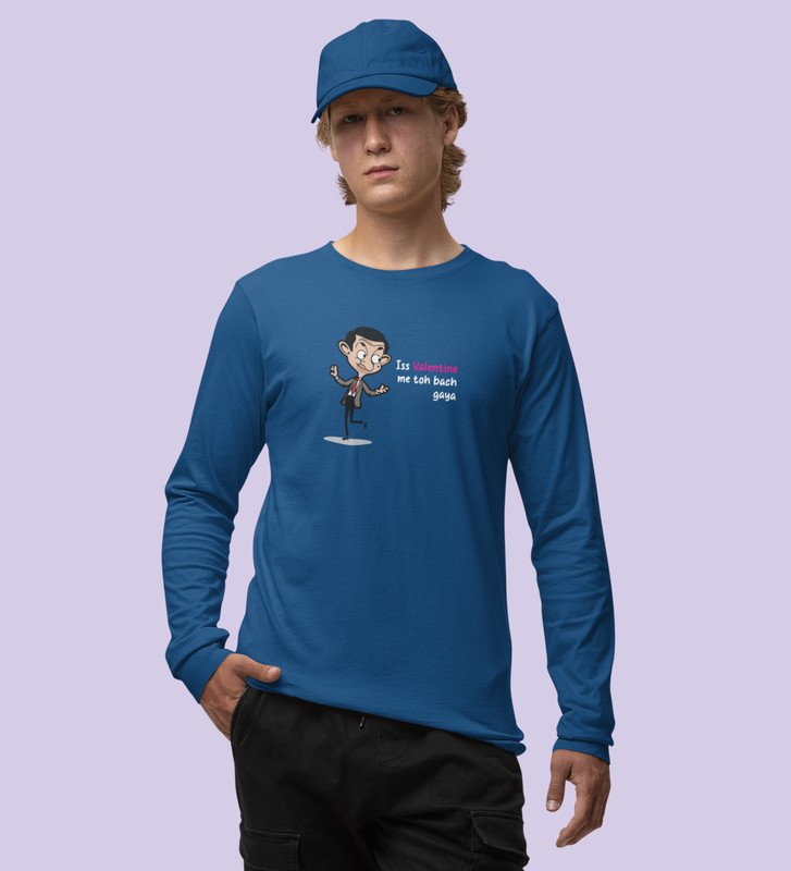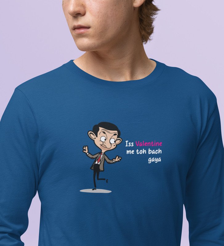 This Valentine I Am Safe: Sublimation Printed (blue) Full Sleeve T-Shirt For Singles