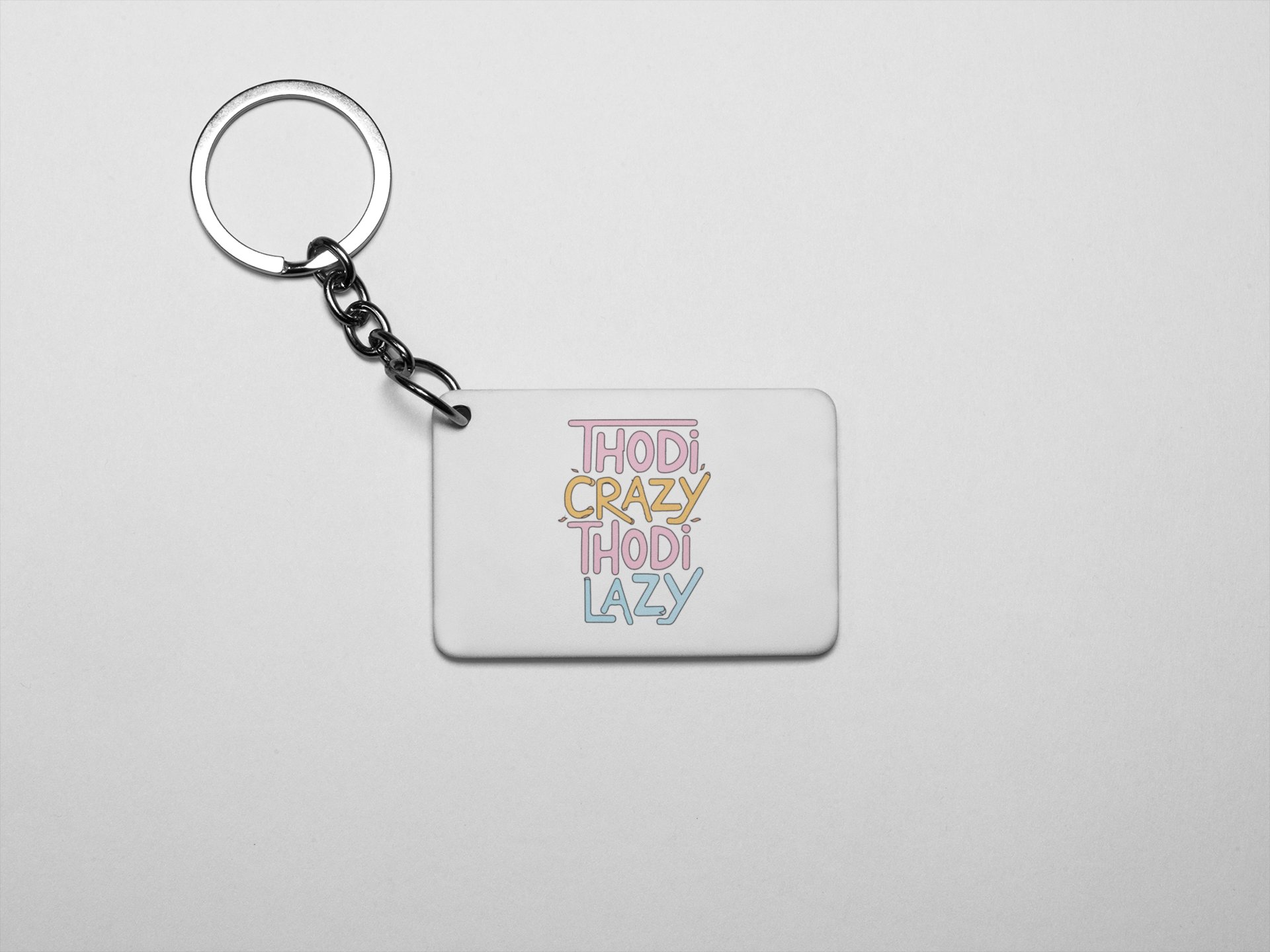 Thodi Crazy,Thodi Lazy -acryllic printed white keychains/ keyrings for bollywood lover people(Pack Of 2)