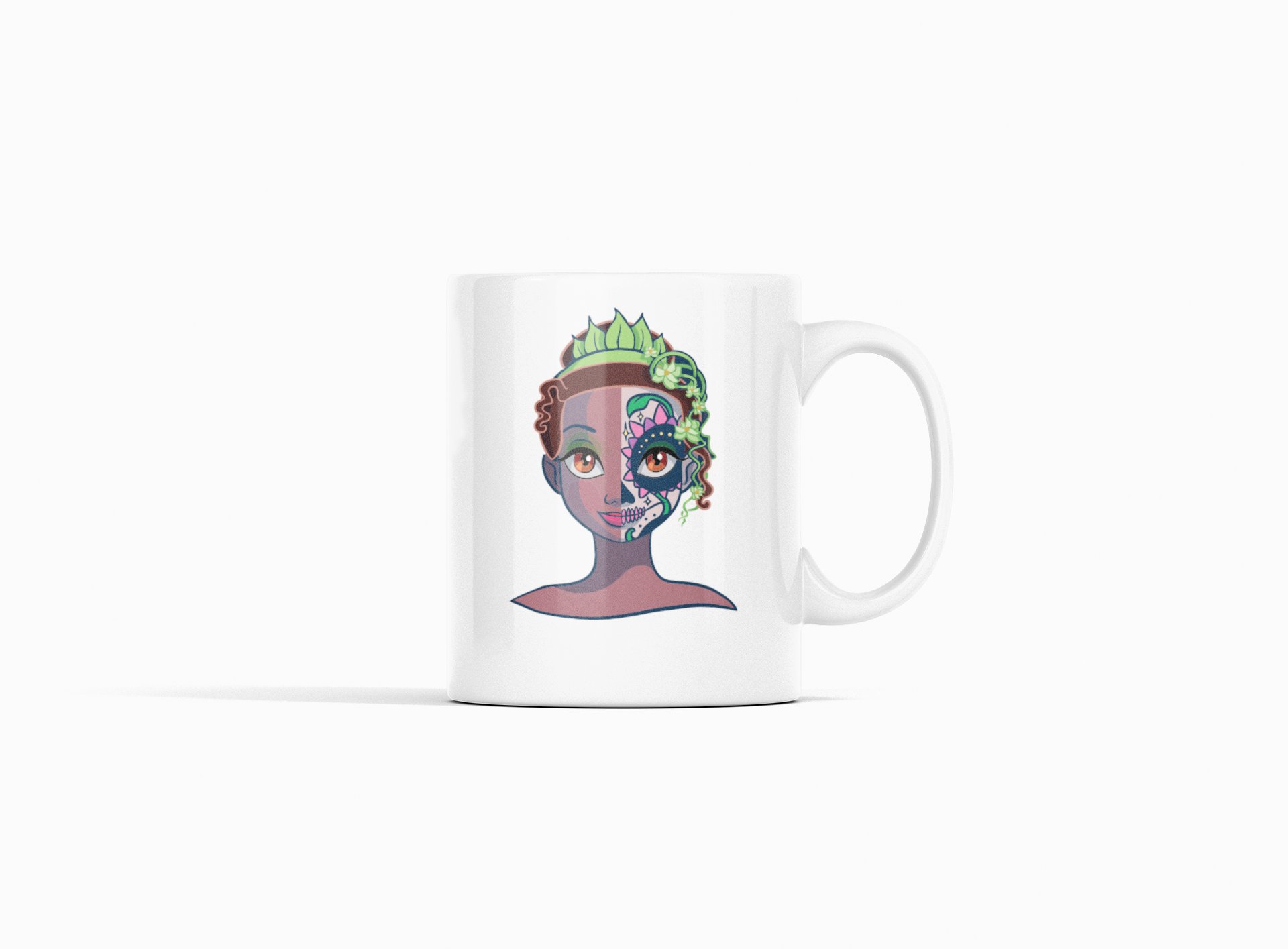 Tiana face - animation themed printed ceramic white coffee and tea mugs/ cups for animation lovers
