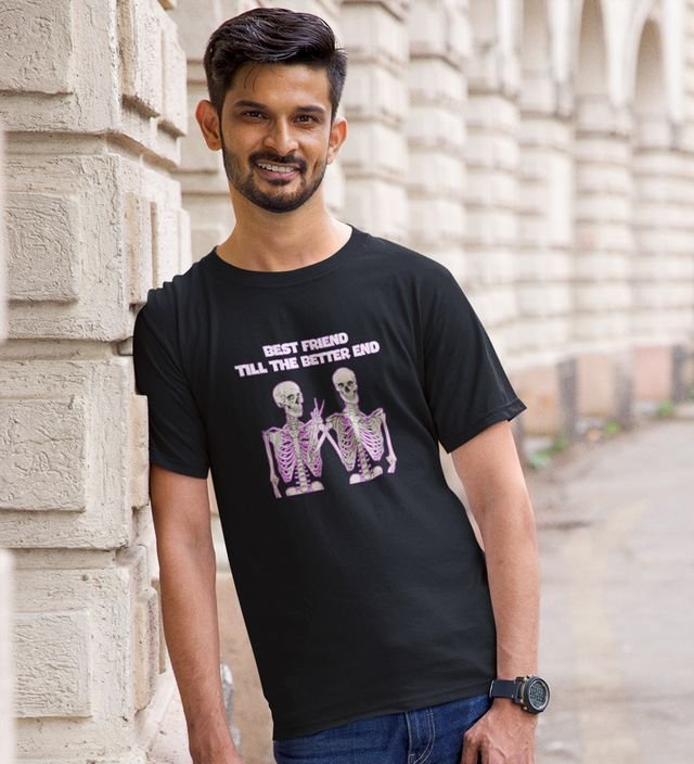 Till The Better End Black Round Neck Cotton Half Sleeved Men T Shirt with Printed Graphics