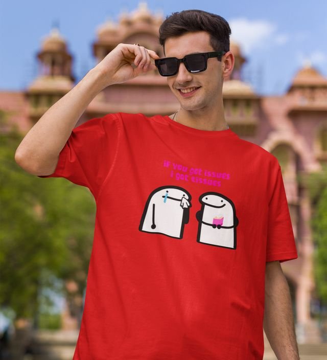 Tissues For Issues Red Round Neck Cotton Half Sleeved Men T Shirt with Printed Graphics