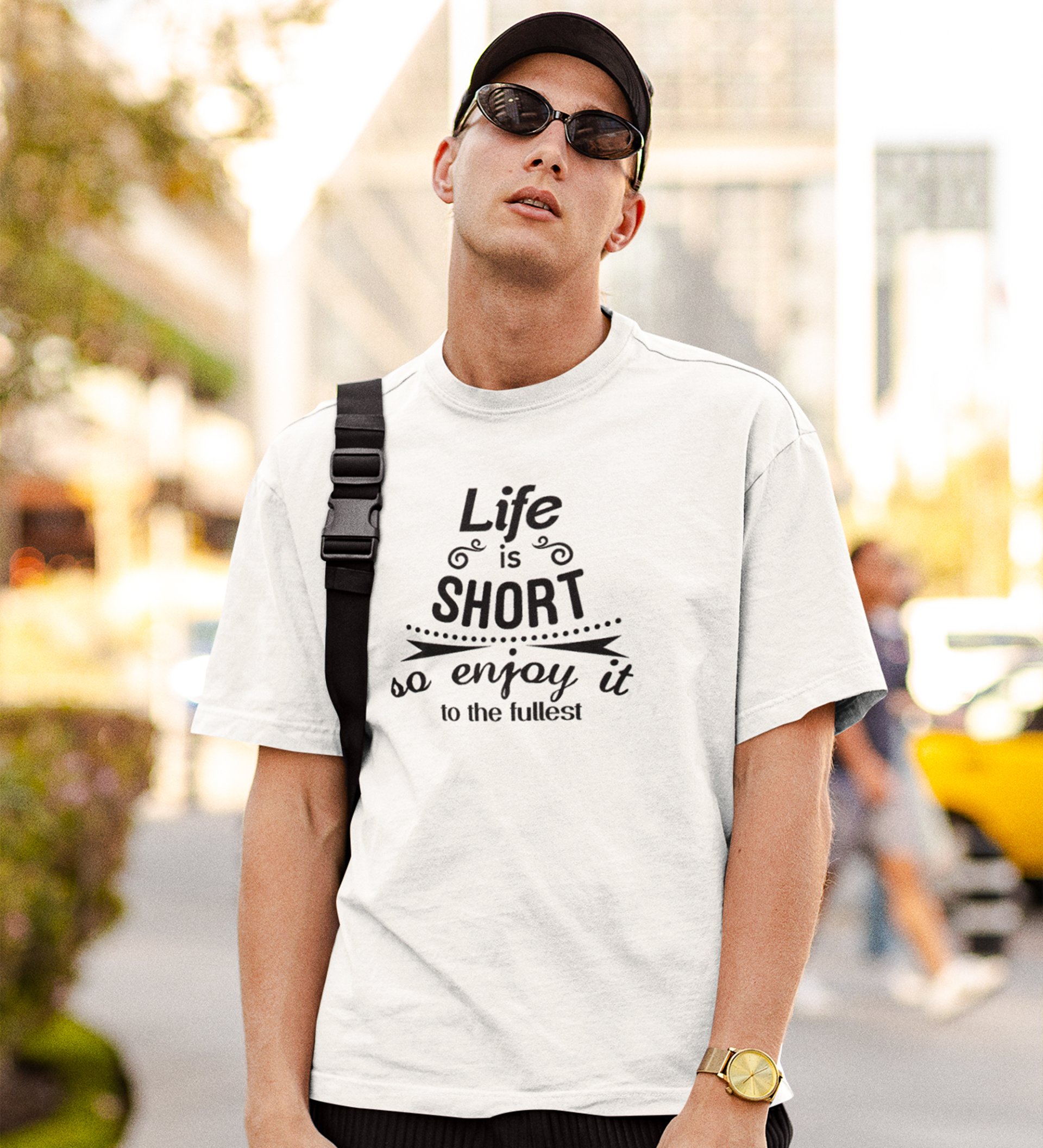 Life Is Short White Round Neck Cotton Half Sleeved Men's T-Shirt with Printed Graphics