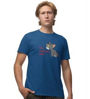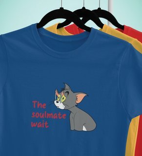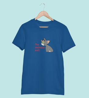 Tom Is Waiting For Soulmate: Printed (Blue) T-Shirt For Singles