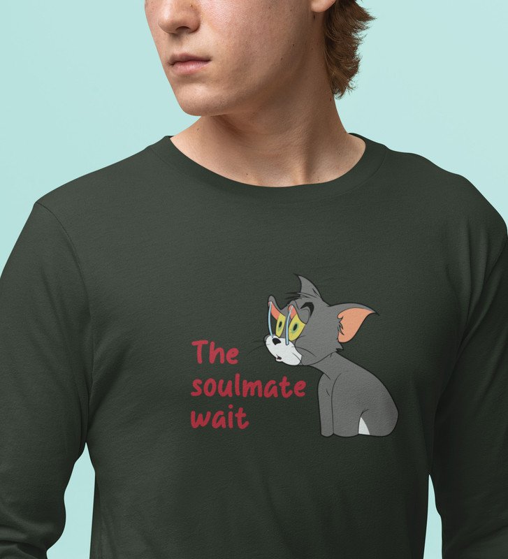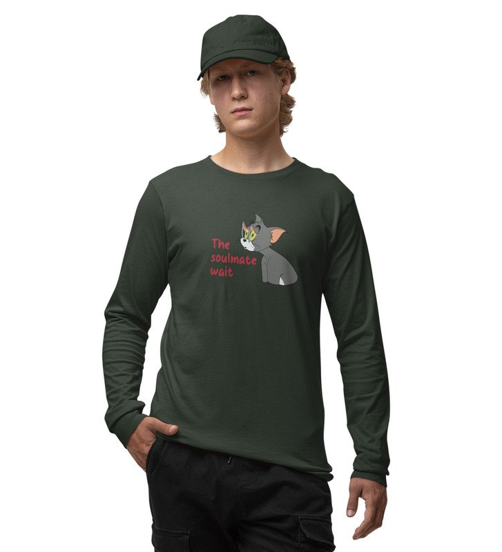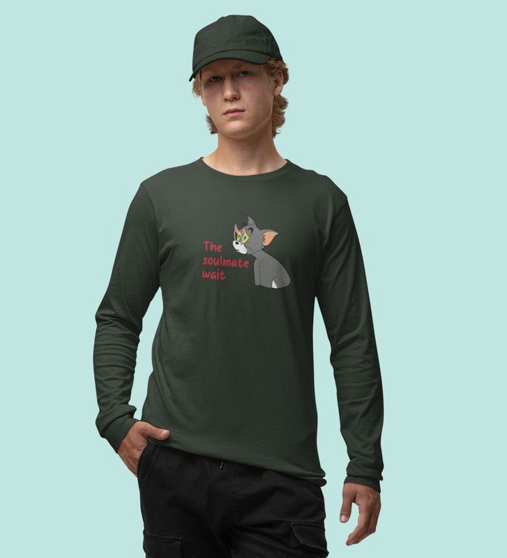 Tom Is Waiting For Soulmate: Printed (green) Full Sleeve T-Shirt For Singles