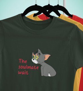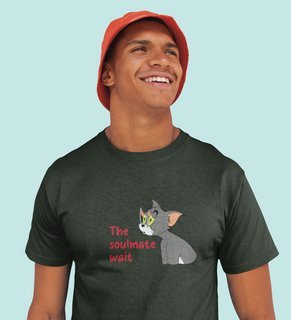 Tom Is Waiting For Soulmate: Printed (Green) T-Shirt For Singles