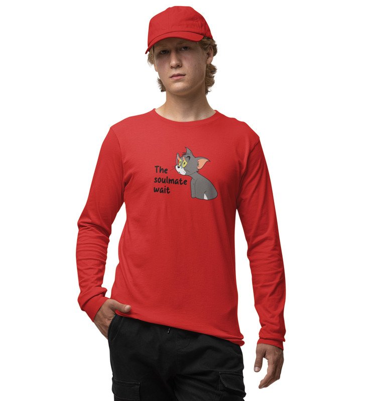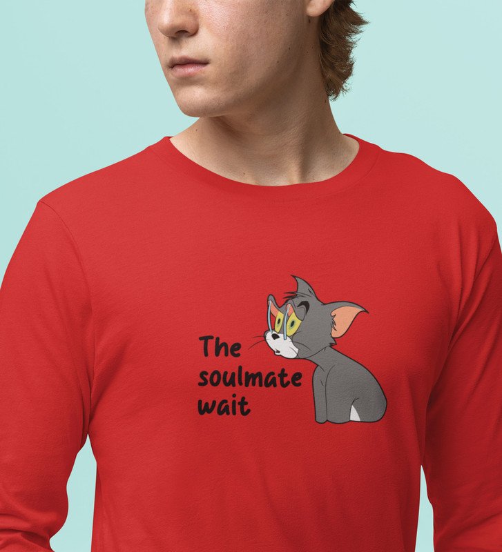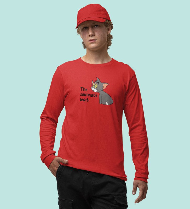 Tom Is Waiting For Soulmate: Printed (red) Full Sleeve T-Shirt For Singles