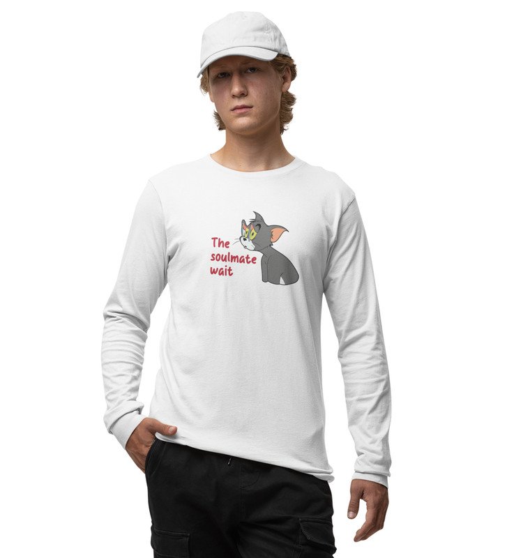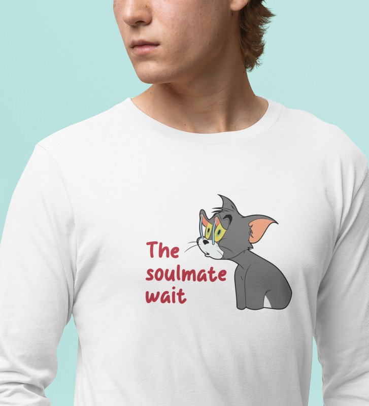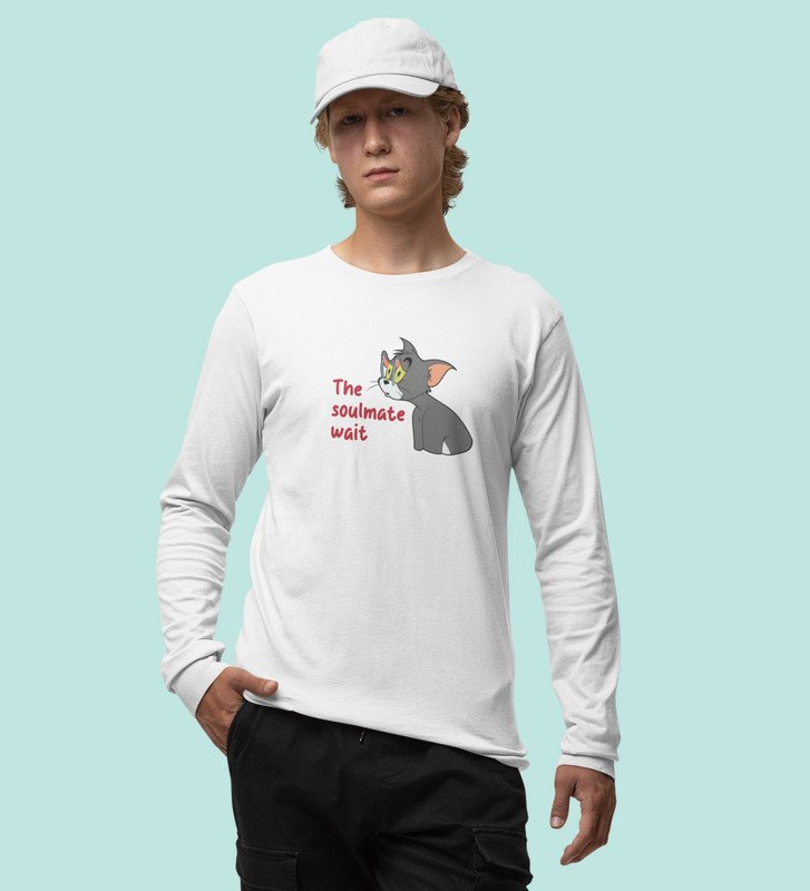 Tom Is Waiting For Soulmate: Printed (white) Full Sleeve T-Shirt For Singles