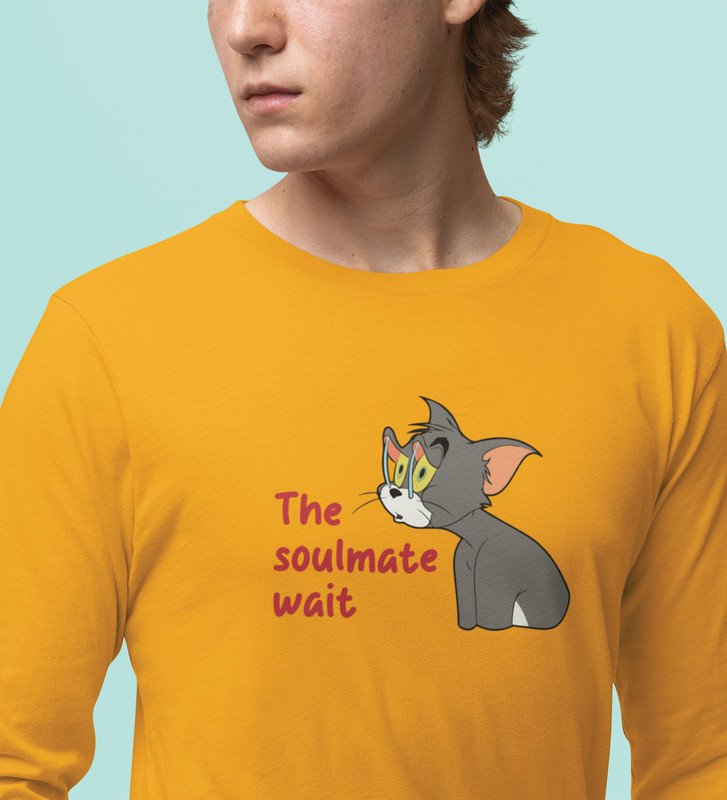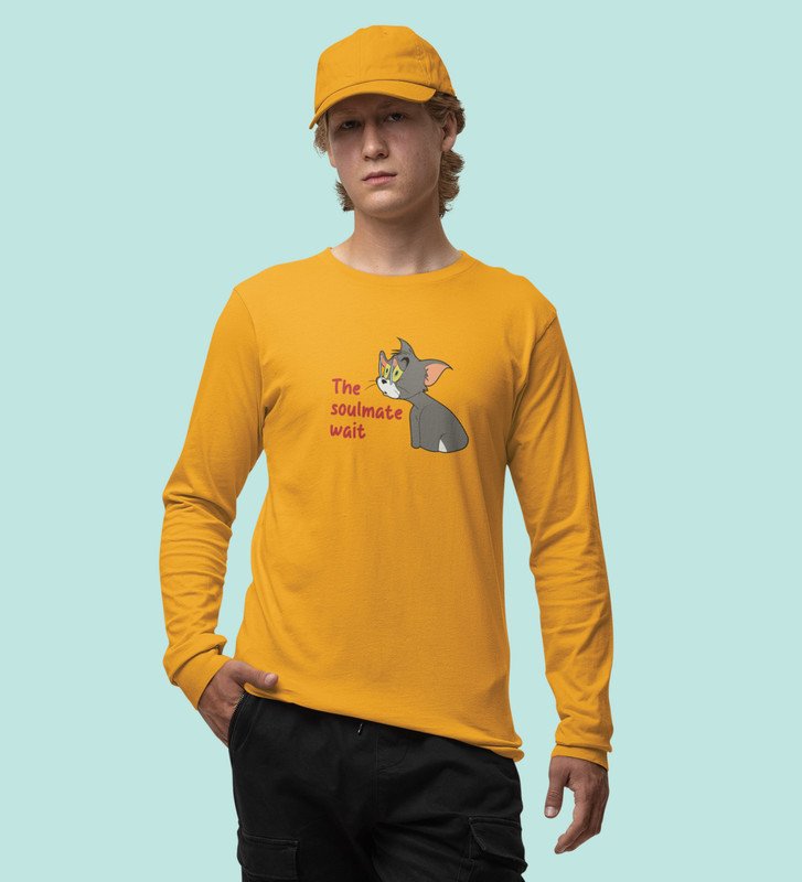 Tom Is Waiting For Soulmate: Printed (yellow) Full Sleeve T-Shirt For Singles