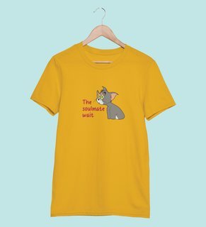 Tom Is Waiting For Soulmate: Printed (yellow) T-Shirt For Singles