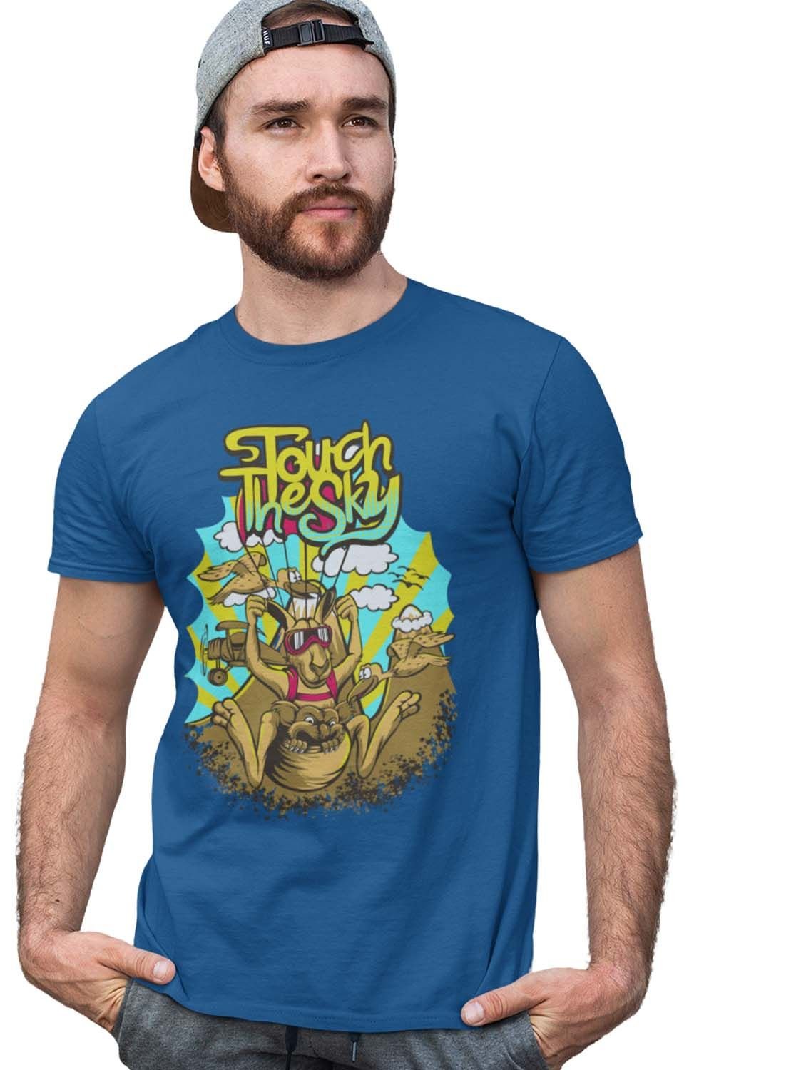 Baseball Monkey Blue Round Neck Cotton Half Sleeved T-Shirt with Printed Graphics