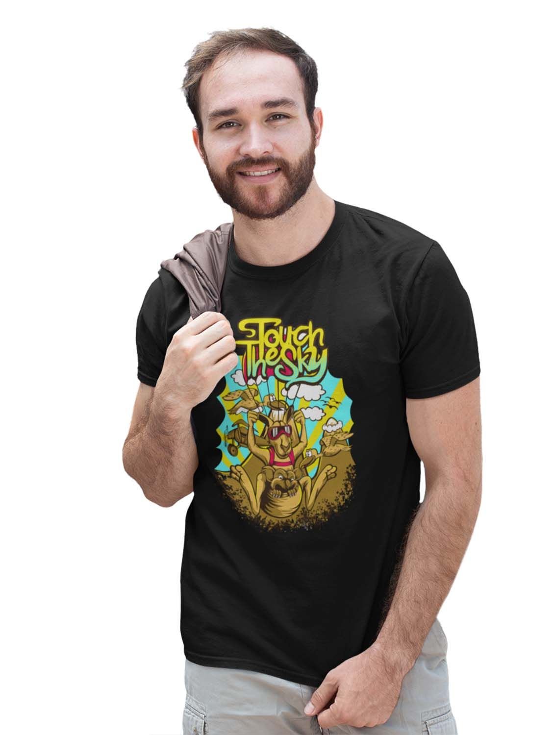 High Jump Kangaroo Black Round Neck Cotton Half Sleeved T-Shirt with Printed Graphics