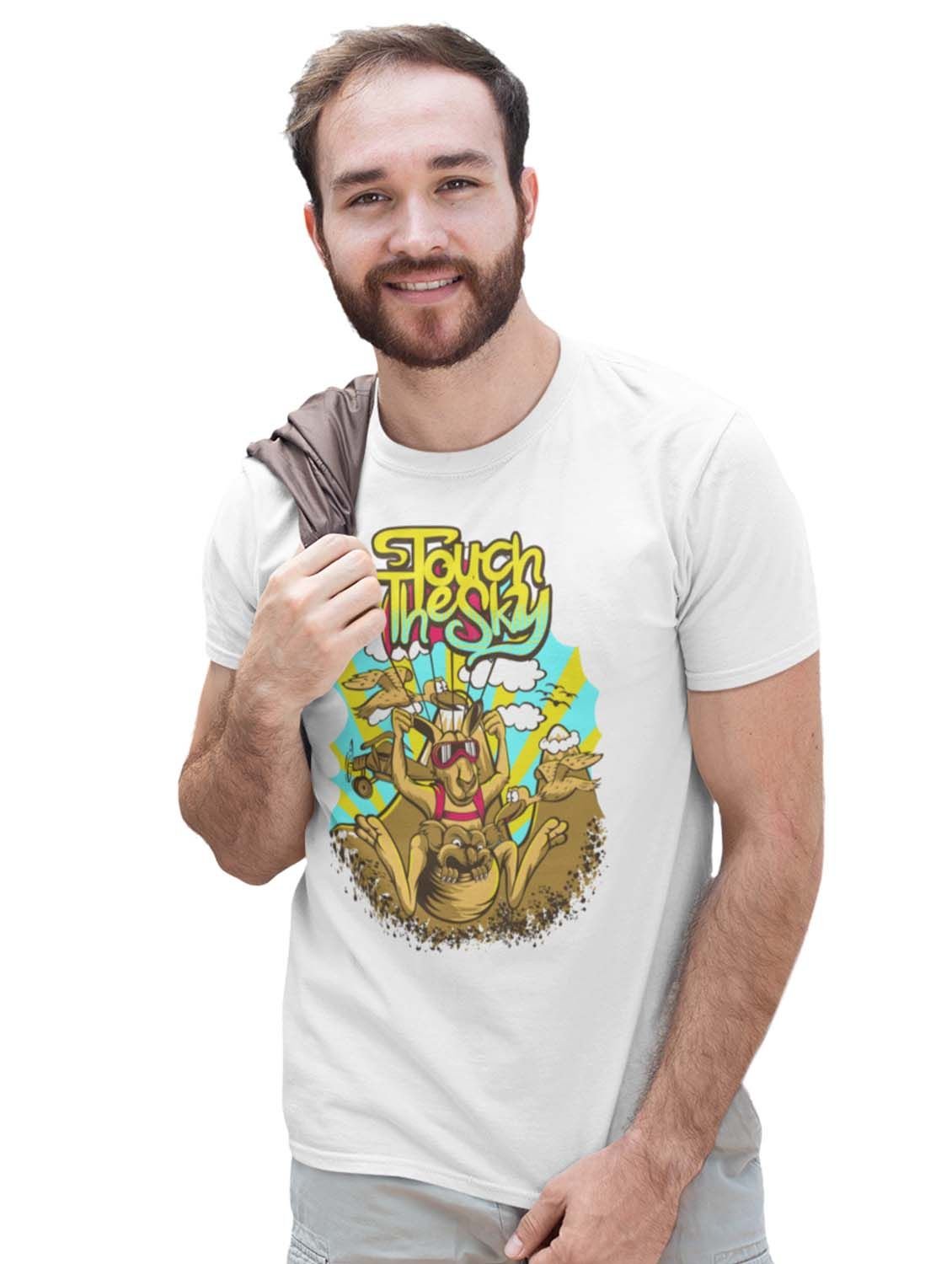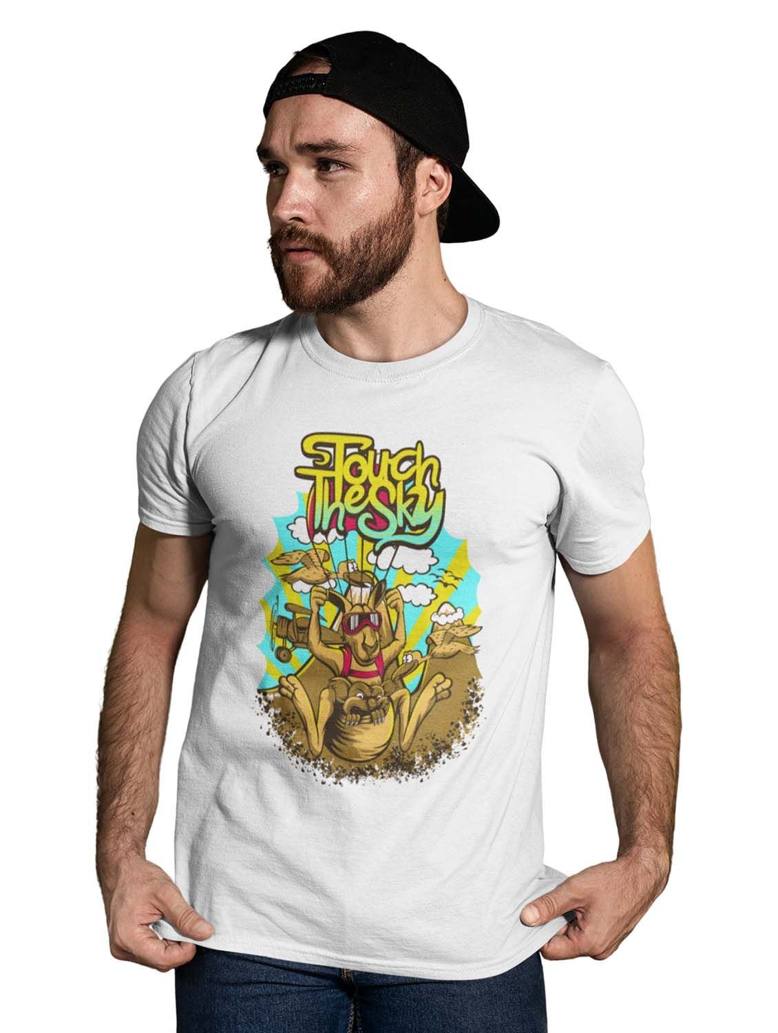 High Jump Kangaroo White Round Neck Cotton Half Sleeved T-Shirt with Printed Graphics