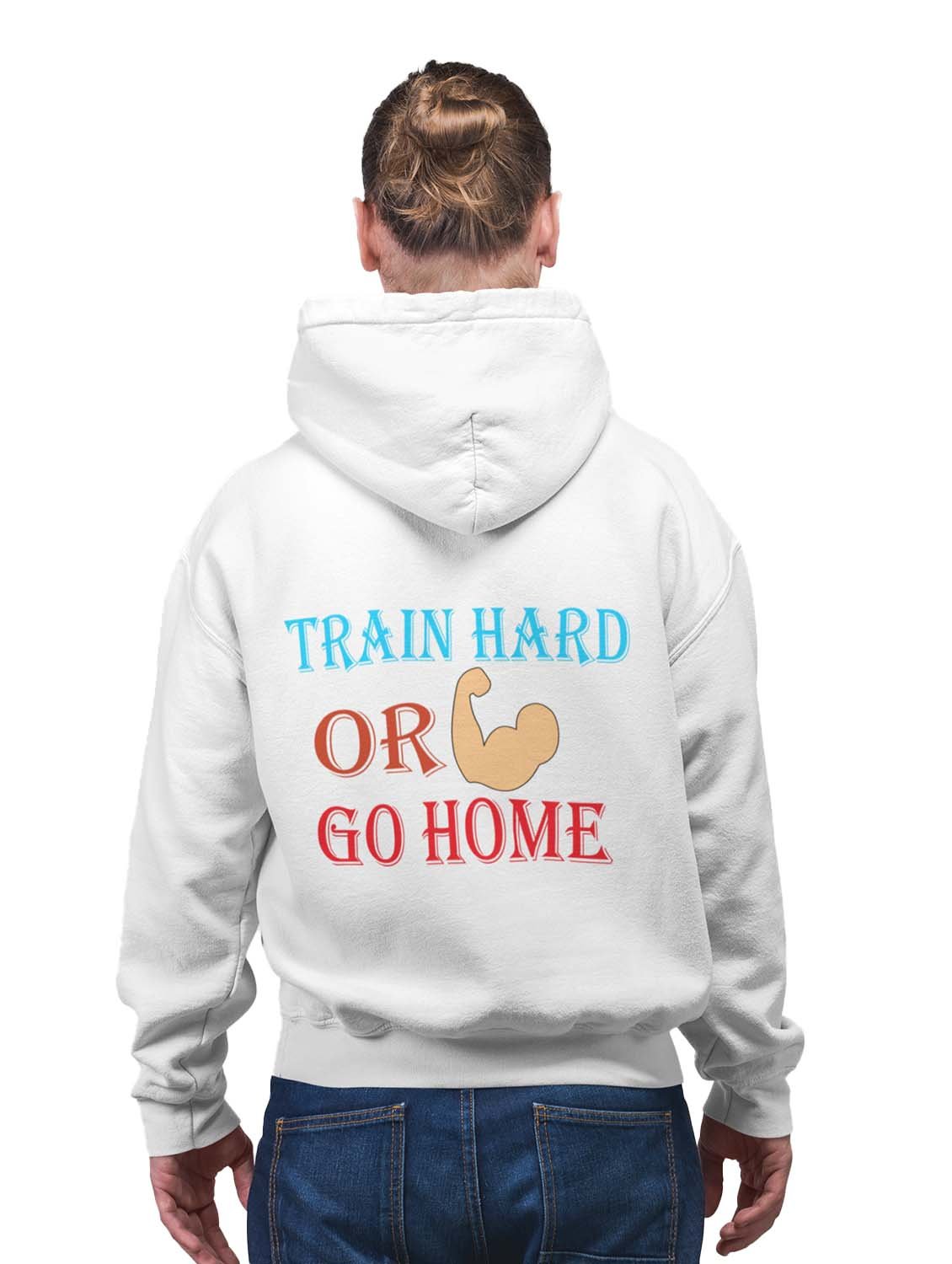 Train Hard or Go Home printed artswear white hoodies for winter casual wear specially for Men