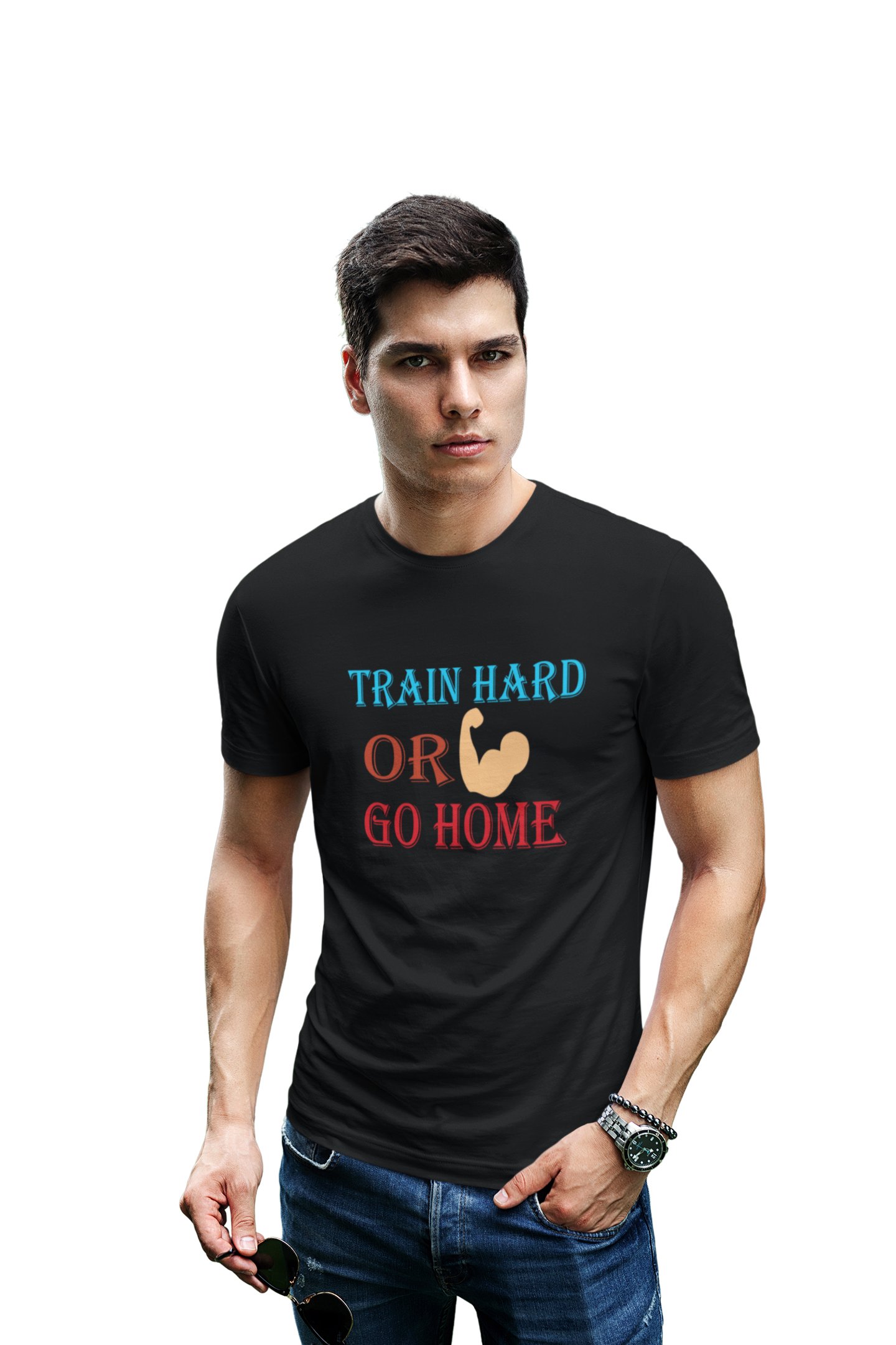 Train Hard or Go Home Round Neck Gym Tshirt (Black Tshirt) - Clothes for Gym Lovers - Suitable for Gym Going Person - Foremost Gifting Material for Your Friends and Close Ones