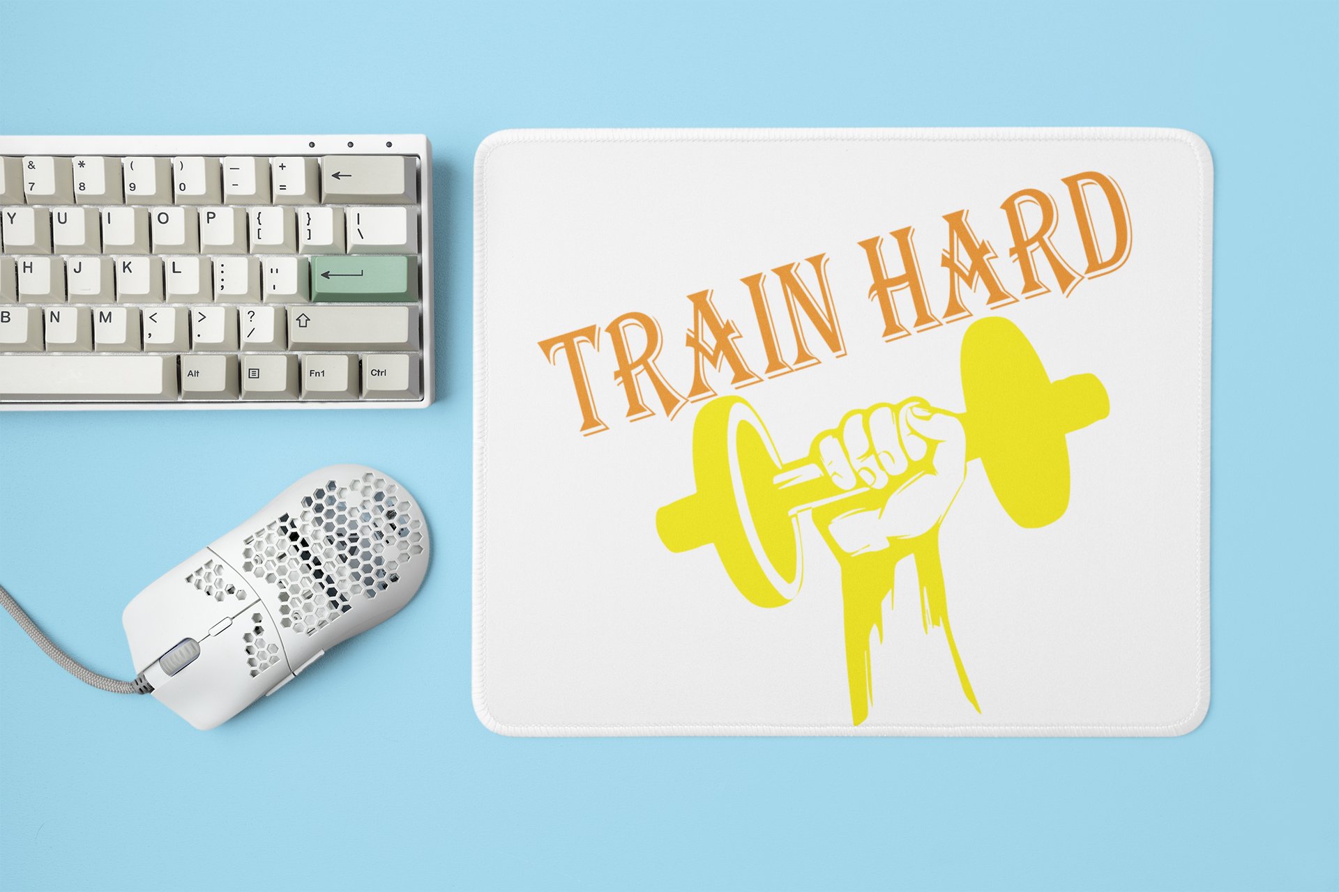 Train Hard,(BG Yellow and Orange) - Printed Mousepads For Gym Lovers