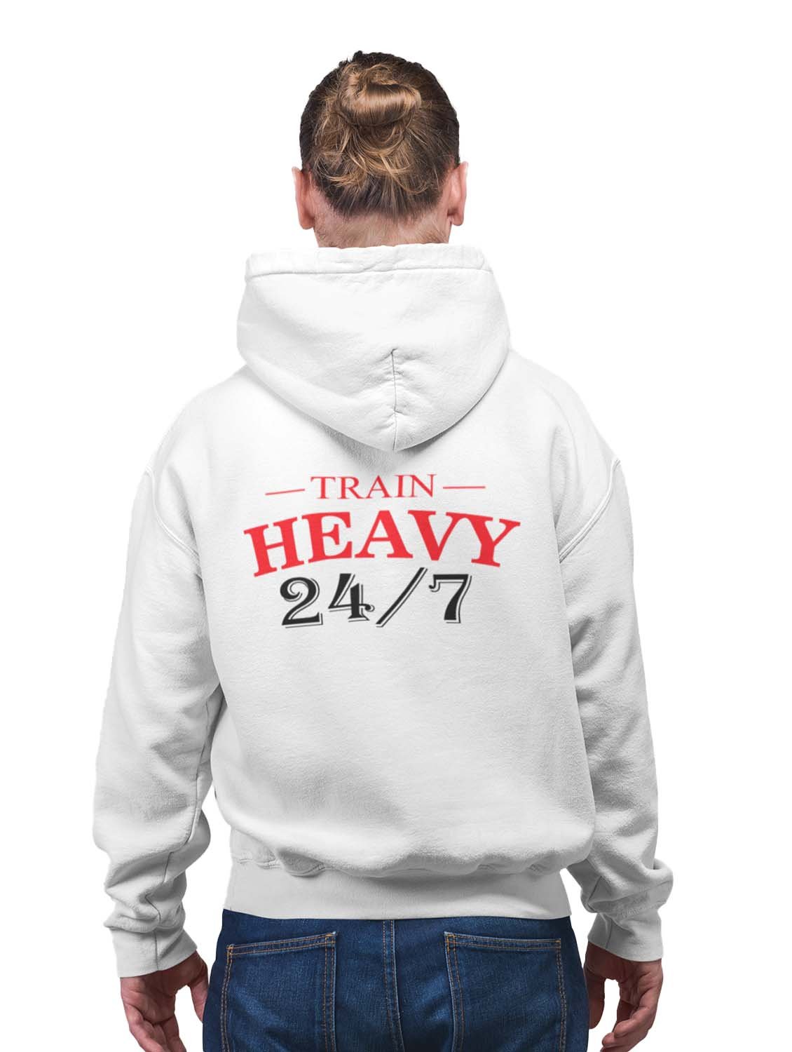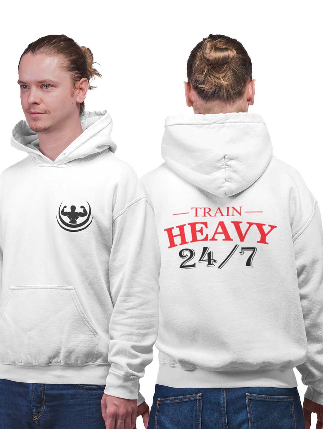 Train Heavy 24/7 (BG Red & Black )printed activewear white hoodies for winter casual wear specially for Men