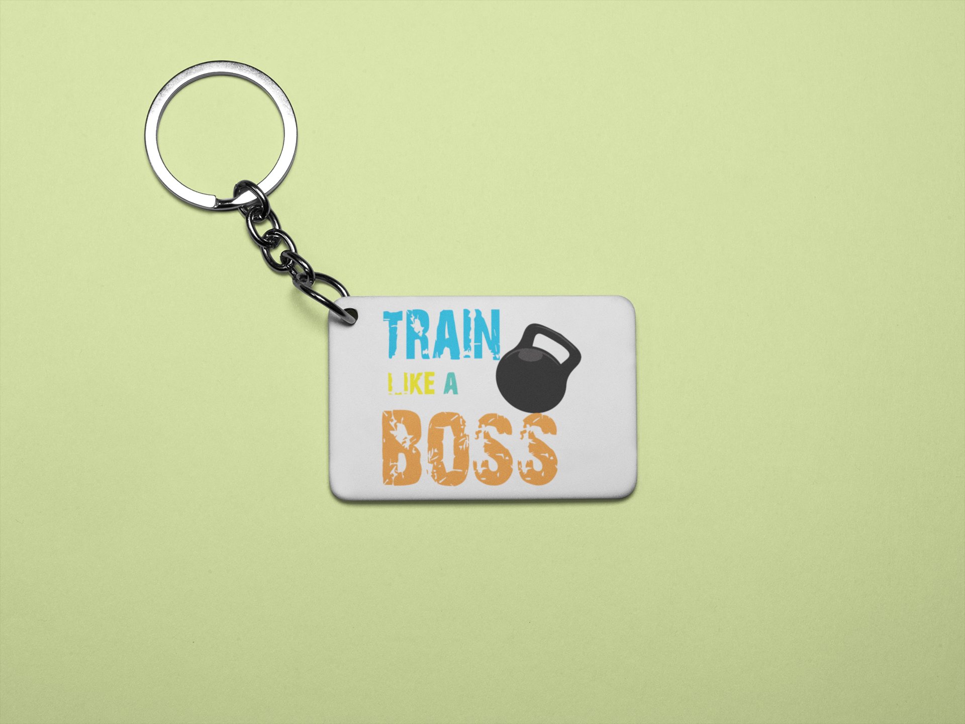 Train Like A Boss, (BG White, Yellow, Green and Orange) - Printed Keychains for gym lovers(Pack of 2)