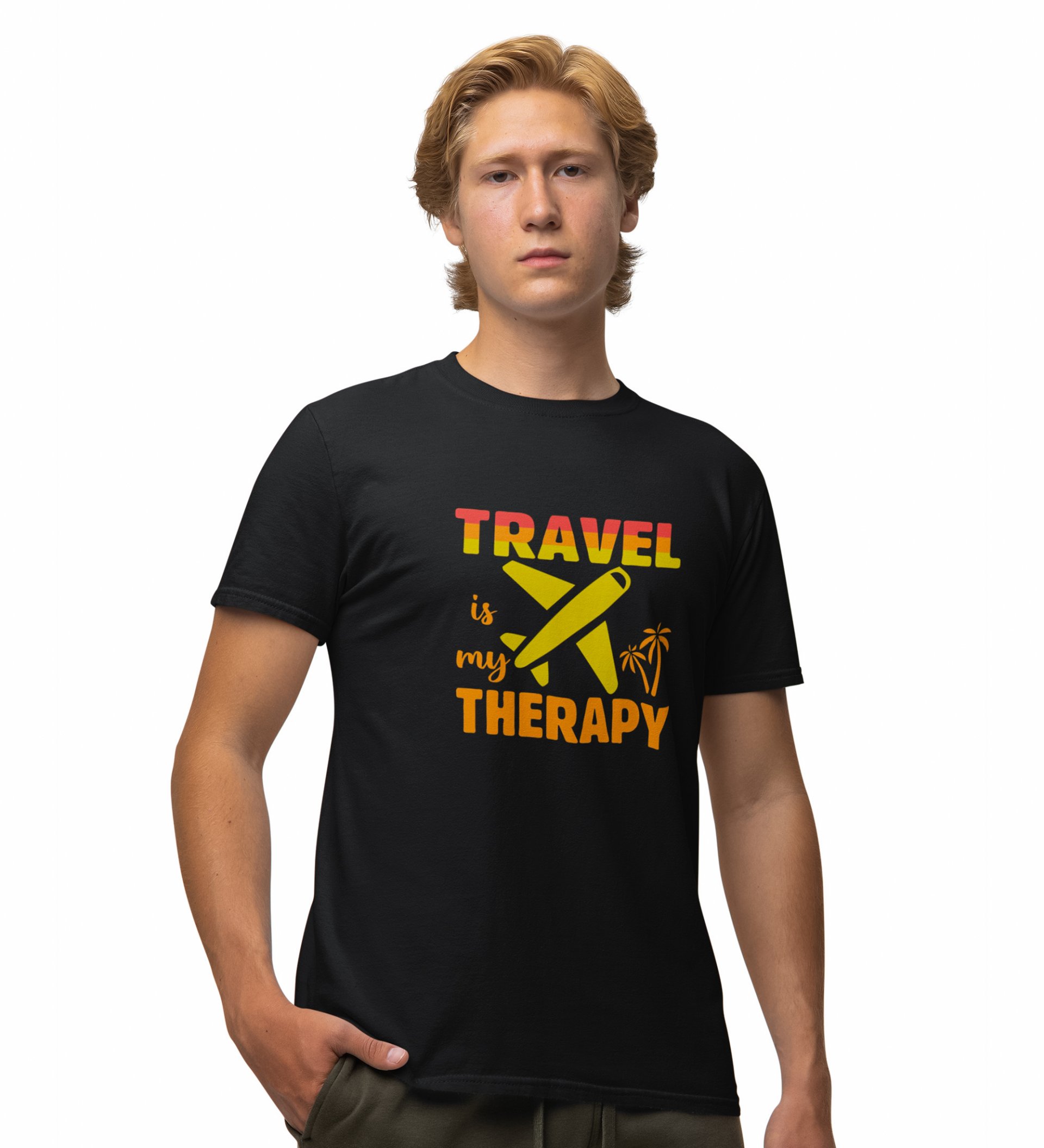 JD.TRENDS The Travel Therapy Black Round Neck Cotton Half Sleeved Men's T-Shirt with Printed Graphics