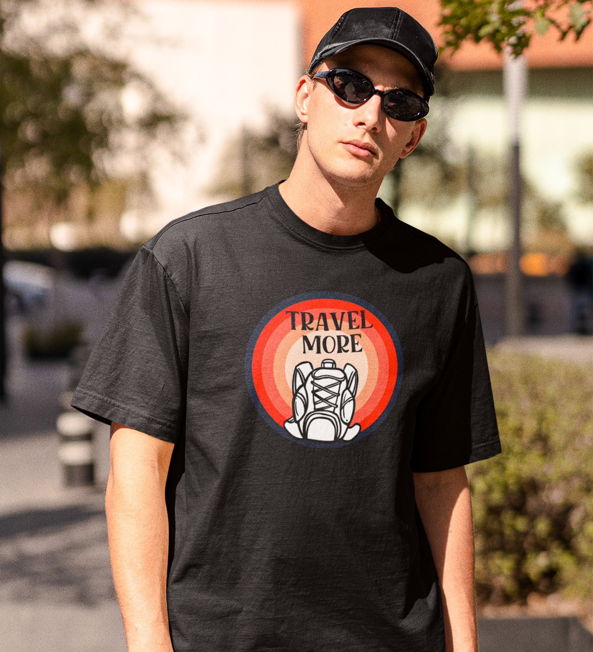 JD.TRENDS Travel More Black Round Neck Cotton Half Sleeved Men's T-Shirt with Printed Graphics