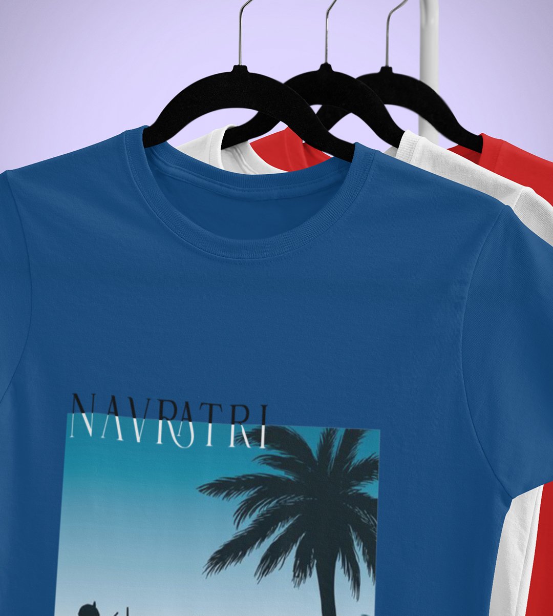 Navratri is a very auspicious festival for hindus. It takes place at the beginning of October and sometimes September. Enjoy the 9 days of festivities with full zeal and make yourself submerged in the love of Maa Durga. Navratri is also known as Durga Puja. And with this Tees, you can shine like a star during this festive season with our navratri themed cotton half sleeved Tshirts. You can pair our t-shirts with trousers and denim of your choice and make it a weekday smart casual or weekend wear. This is durable. This tshirt is smooth and soft which makes you comfortable to wear during all seasons. The printing in it is durable and odourless. It has five sizes, S,M,L,XL,XXL. The Tshirt colour is intact even after repeated washes. It can be kept in your wardrobe and hangers. Please avoid washing mashine to clean this Tee, it may affect the print. Hand wash only. We have brought you many navratri related designs printed on our different colour Tshirts to choose from. Grab it now.