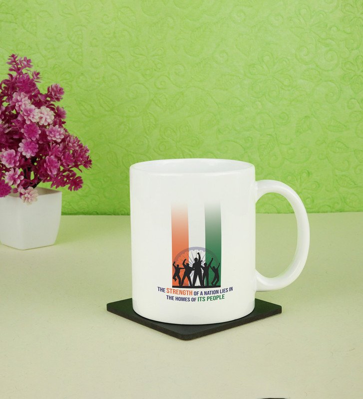 Tricolour Strength White Printed Coffee Mug For Gifts