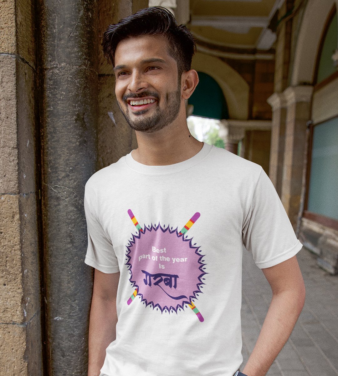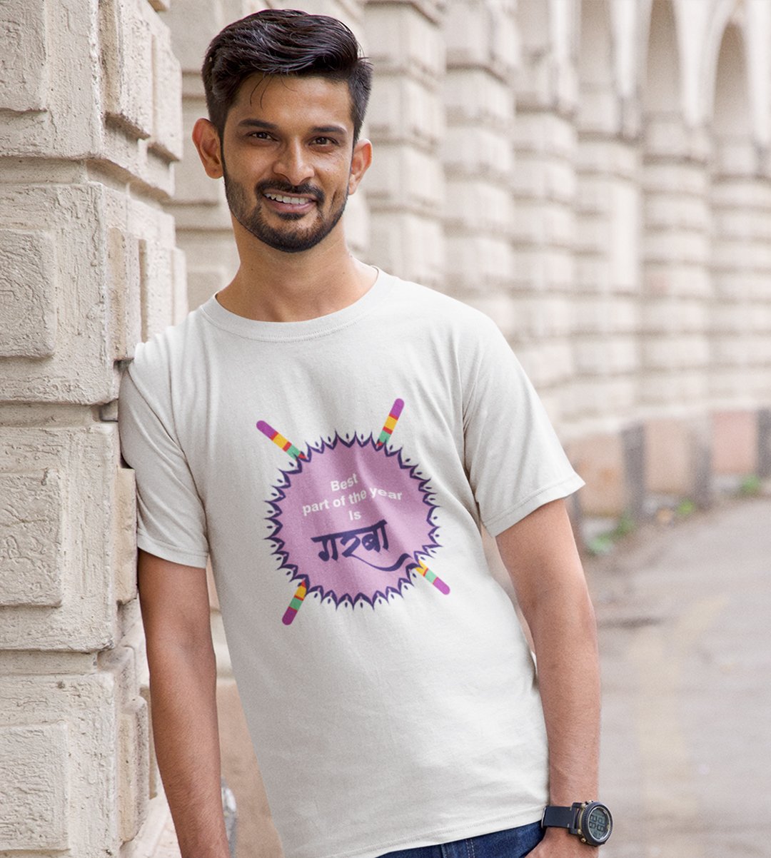 Navratri is a very auspicious festival for hindus. It takes place at the beginning of October and sometimes September. Enjoy the 9 days of festivities with full zeal and make yourself submerged in the love of Maa Durga. Navratri is also known as Durga Puja. And with this Tees, you can shine like a star during this festive season with our navratri themed cotton half sleeved Tshirts. You can pair our t-shirts with trousers and denim of your choice and make it a weekday smart casual or weekend wear. This is durable. This tshirt is smooth and soft which makes you comfortable to wear during all seasons. The printing in it is durable and odourless. It has five sizes, S,M,L,XL,XXL. The Tshirt colour is intact even after repeated washes. It can be kept in your wardrobe and hangers. Please avoid washing mashine to clean this Tee, it may affect the print. Hand wash only. We have brought you many navratri related designs printed on our different colour Tshirts to choose from. Grab it now.