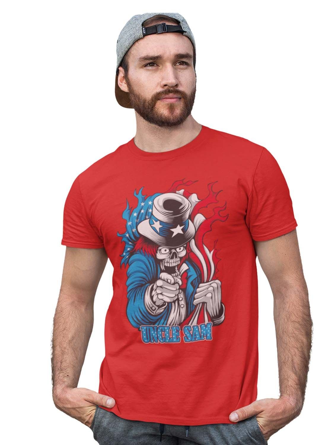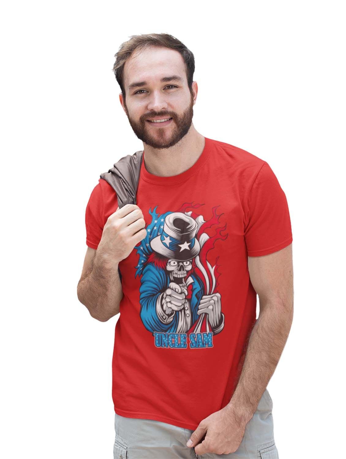 Uncle Sam Red Round Neck Cotton Half Sleeved T-Shirt with Printed Graphics