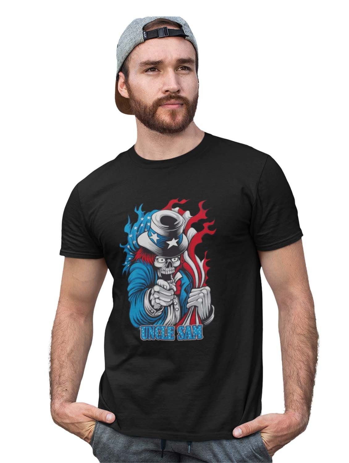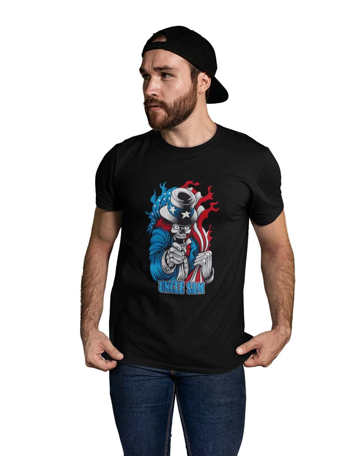 Uncle Sam Black Round Neck Cotton Half Sleeved T-Shirt with Printed Graphics
