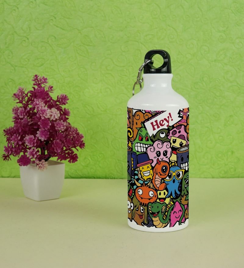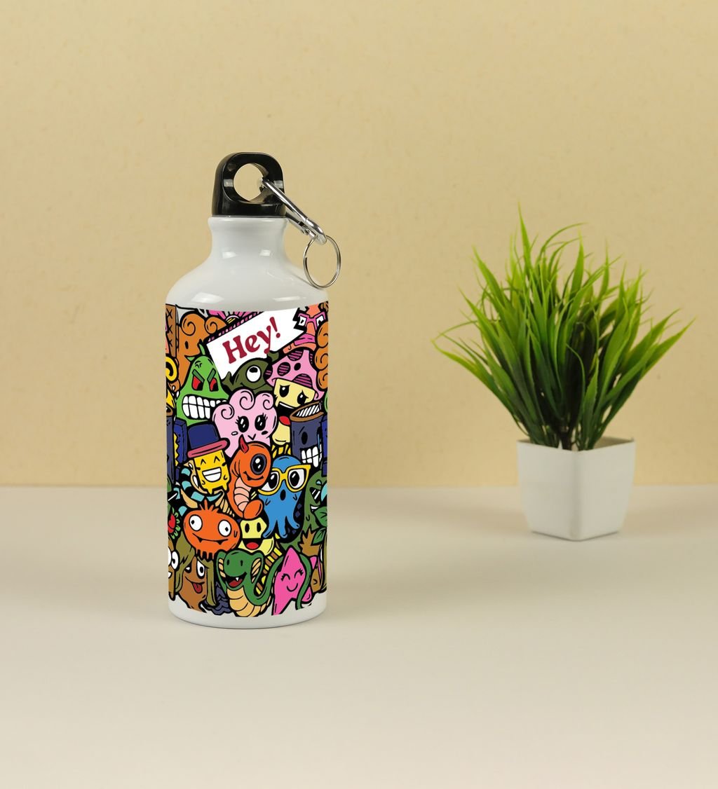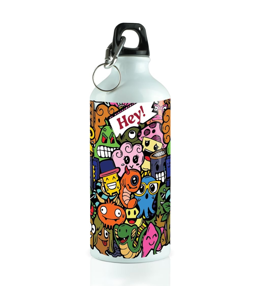 Unique Overcrowd Creatures for a Creative Touch Doodles Printed Aluminium Water Bottle 600ml