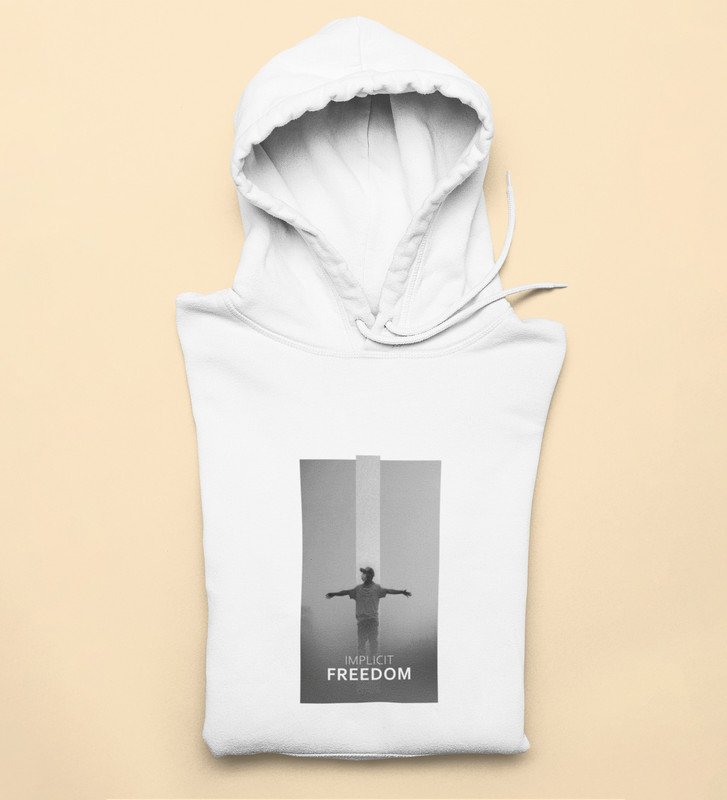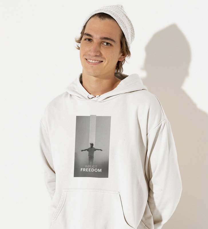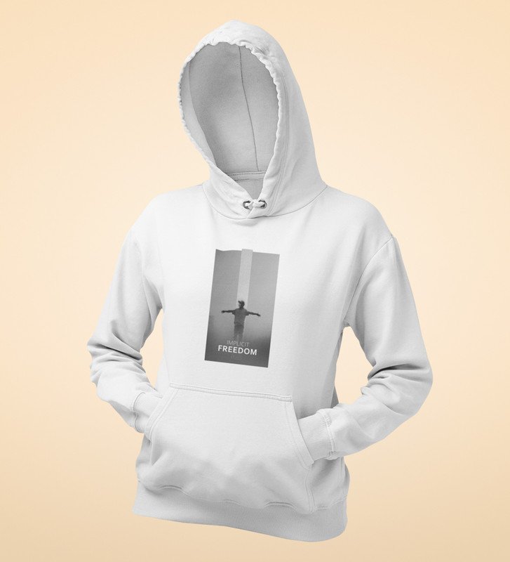 Unspoken Freedom, Dynamic Impressions:White Men's Trendy Round Neck Hoodies with Front Print