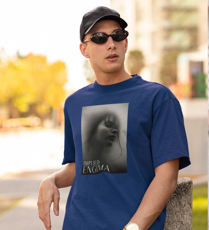 Untold Enigma, Blue Metro Fusion: Men's Oversized Tee featuring Front Print Detail