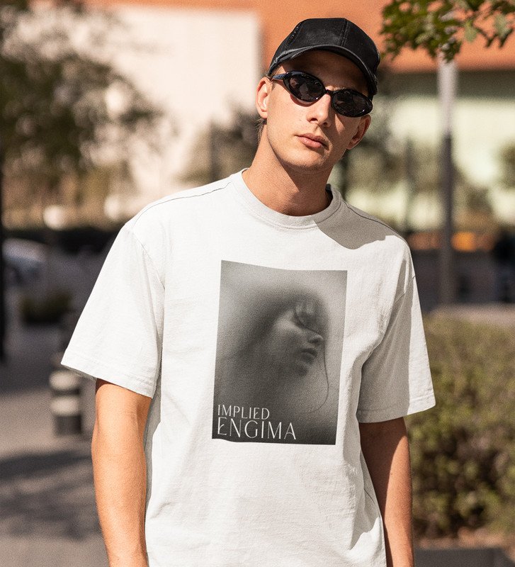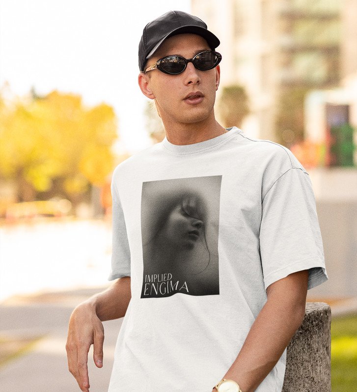 Untold Enigma, White Metro Fusion: Men's Oversized Tee featuring Front Print Detail