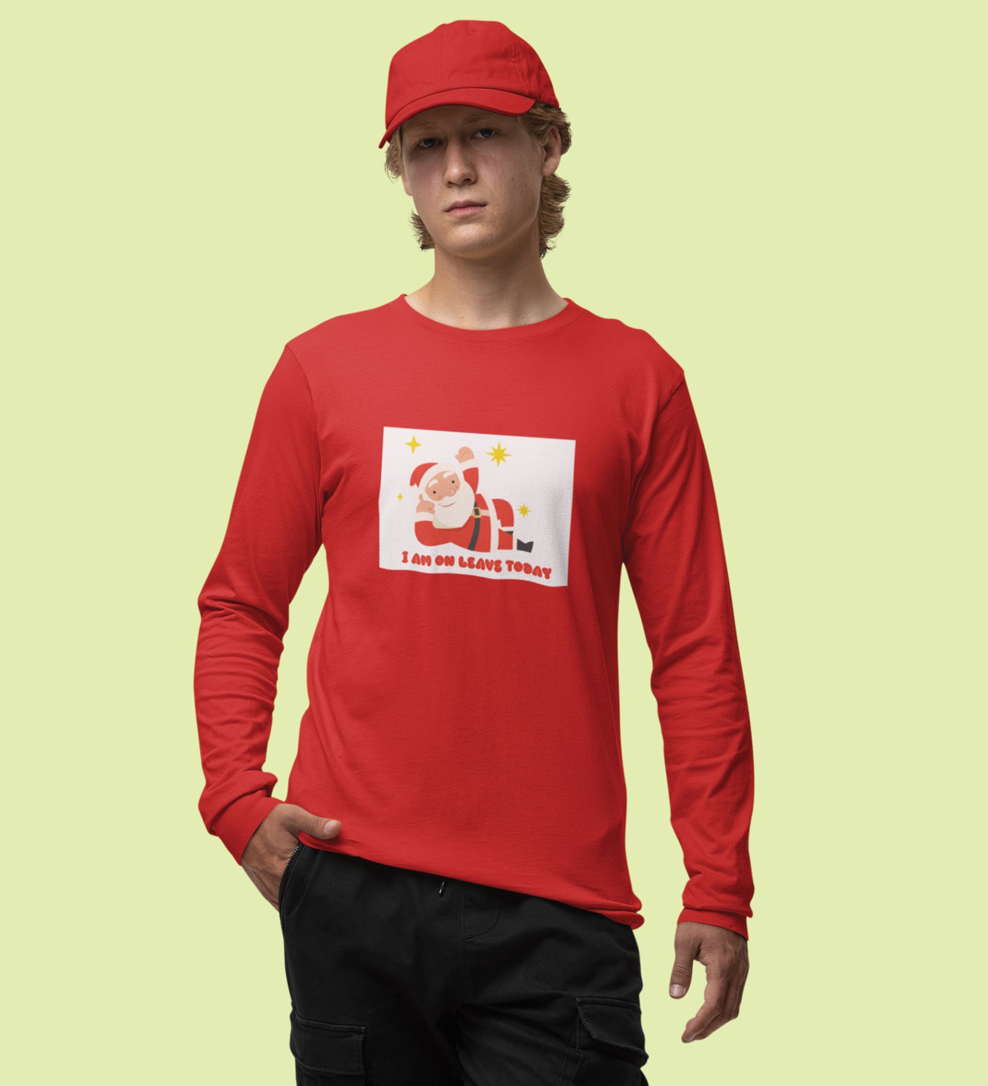 Vacational Santa: Humorously DesignedFull Sleeve T-shirt Red Best Gift For Secret Santa