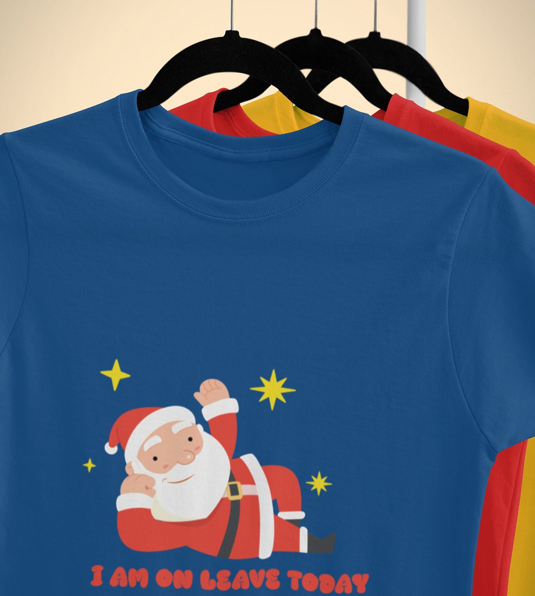 Vacational Santa: Humorously Printed T-shirt (Blue) Best Gift For Secret Santa