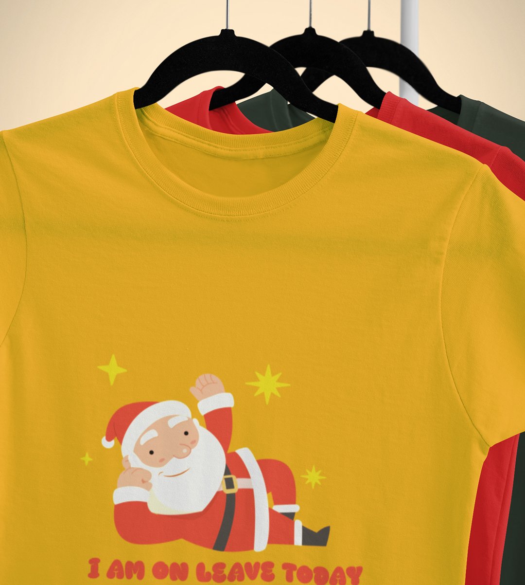 Vacational Santa: Humorously Printed T-shirt (Yellow) Best Gift For Secret Santa
