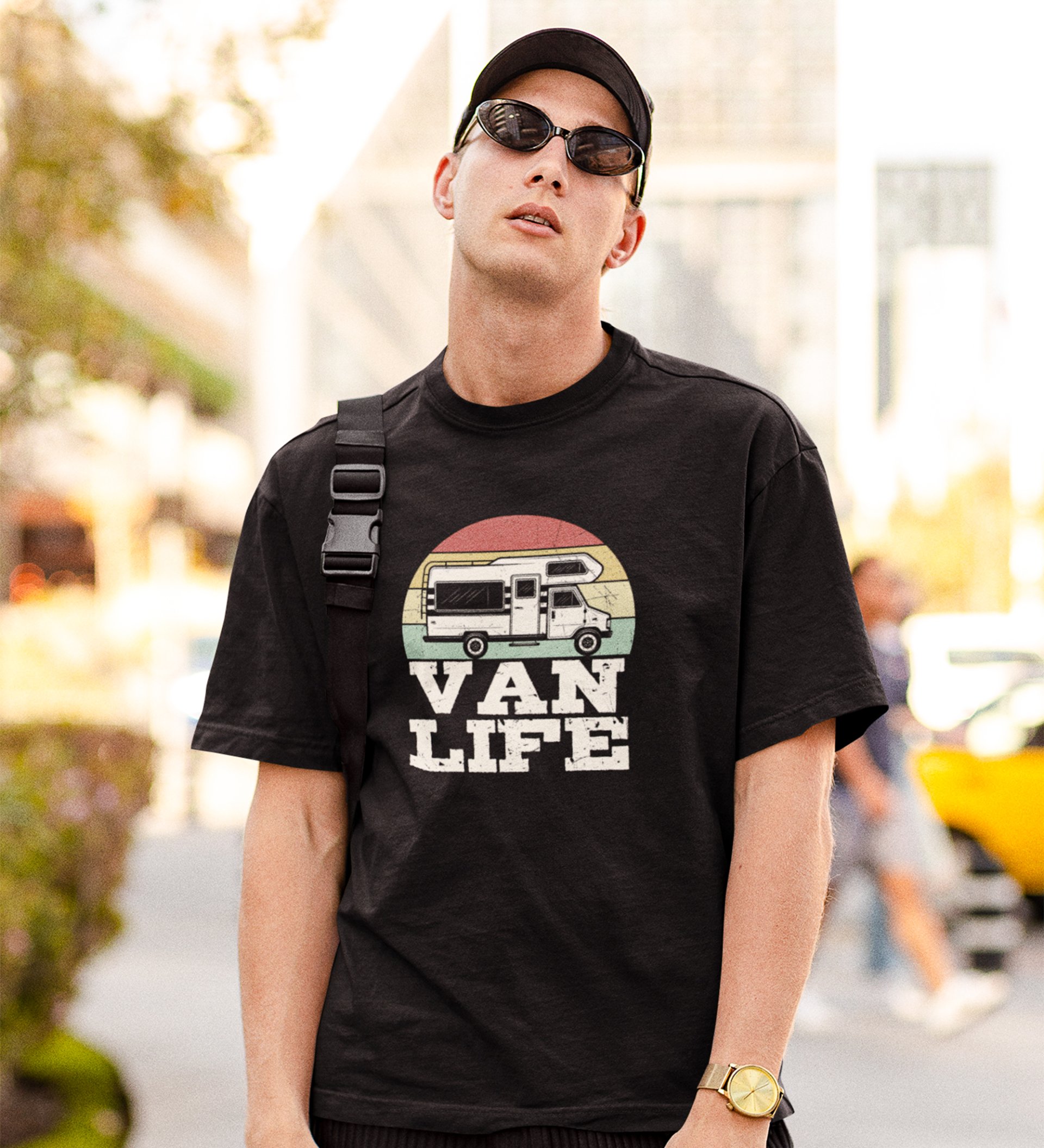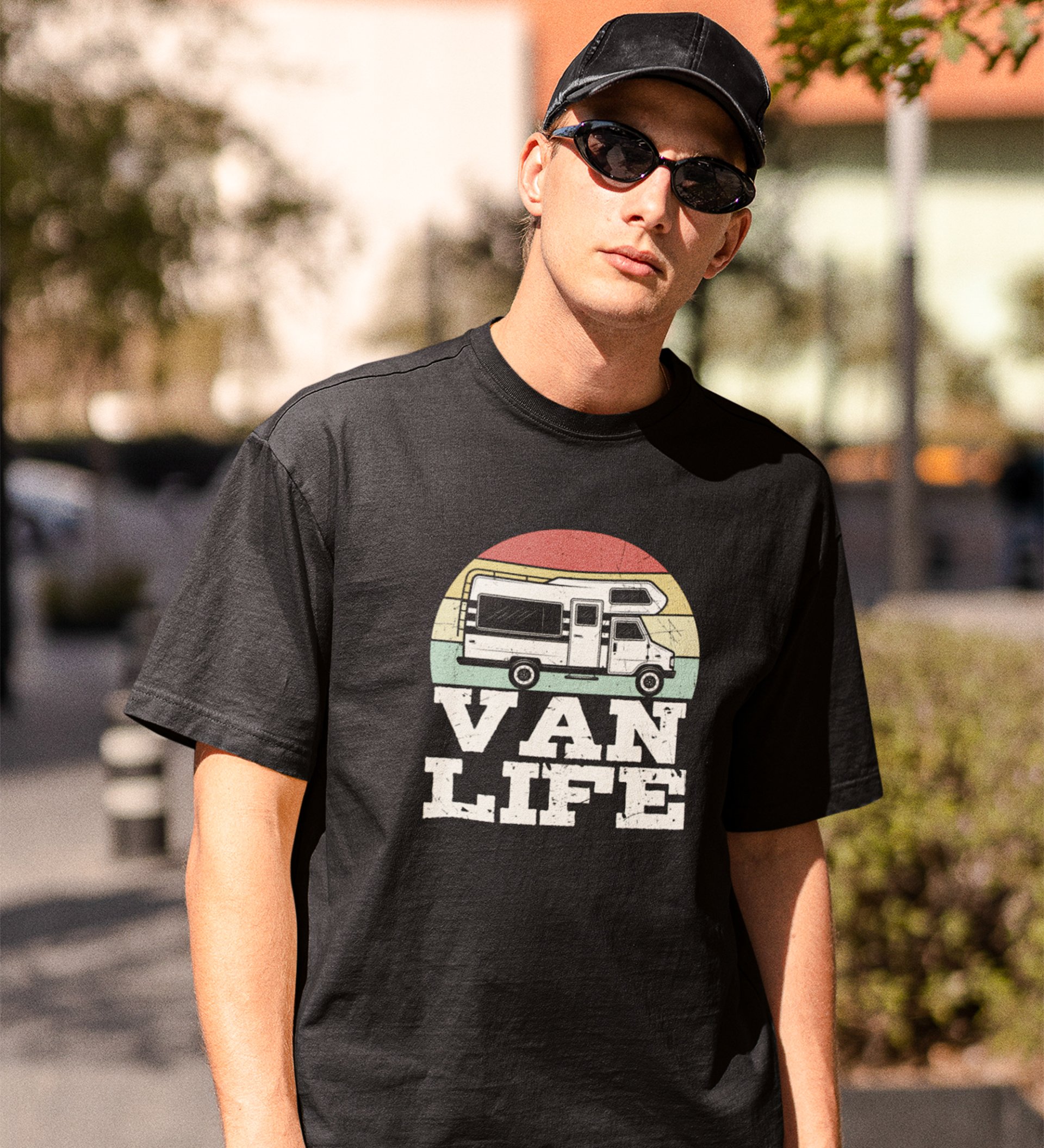 JD.TRENDS Van Life Black Round Neck Cotton Half Sleeved Men's T-Shirt with Printed Graphics