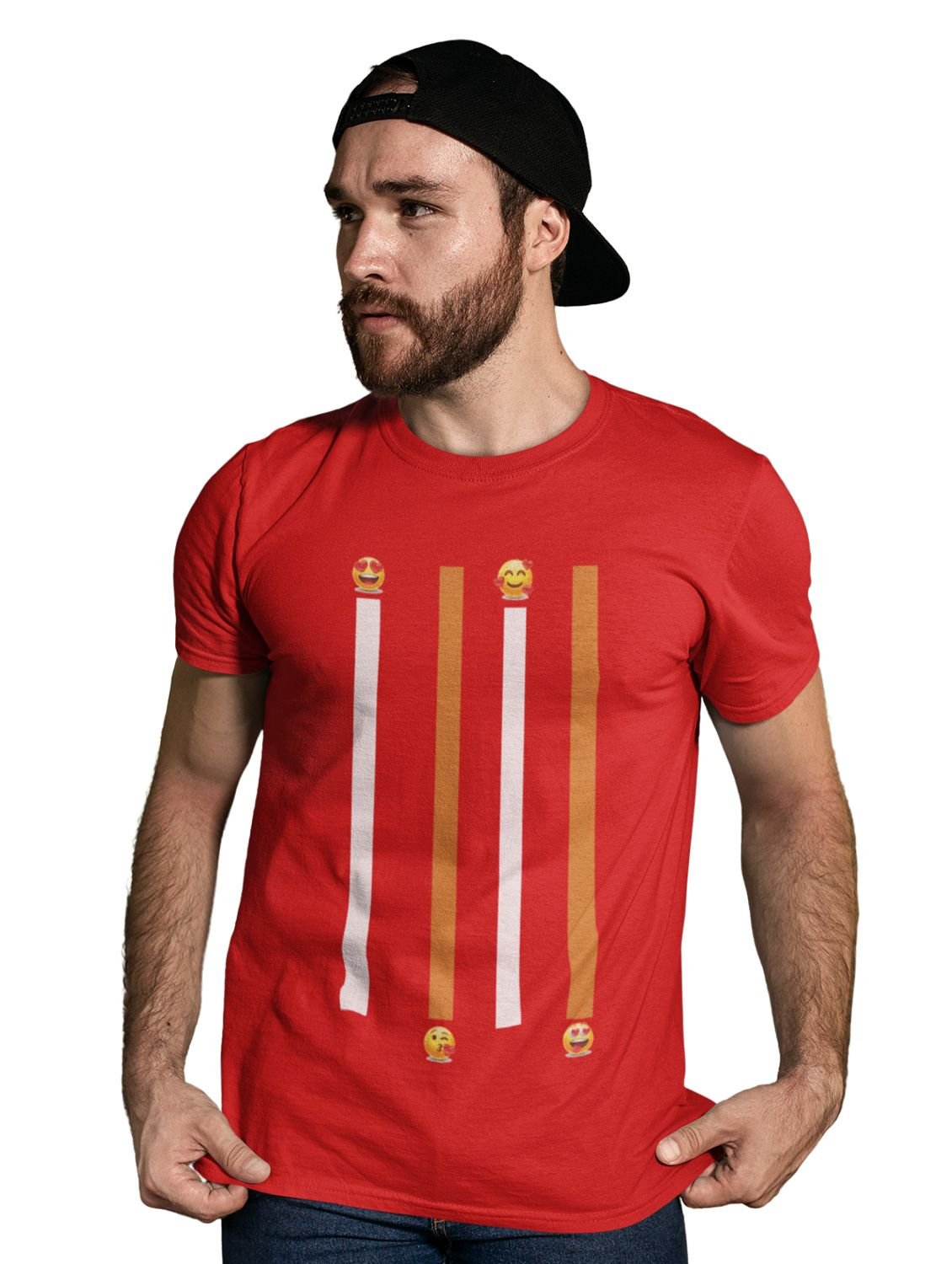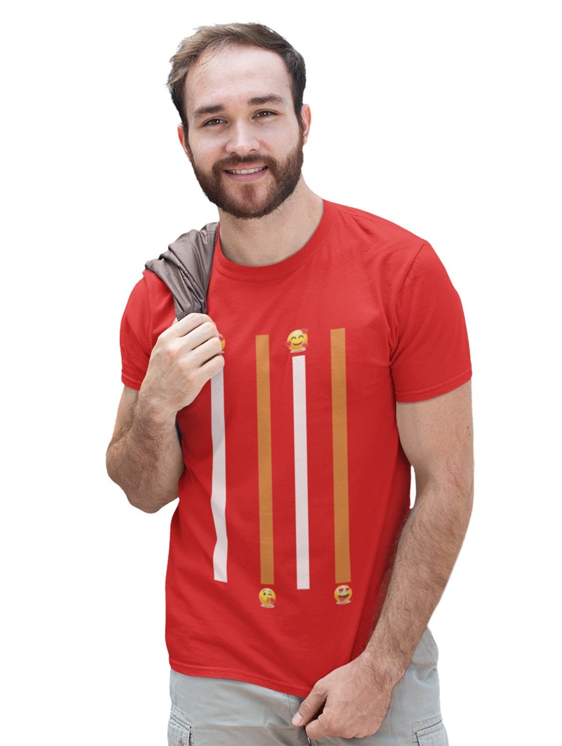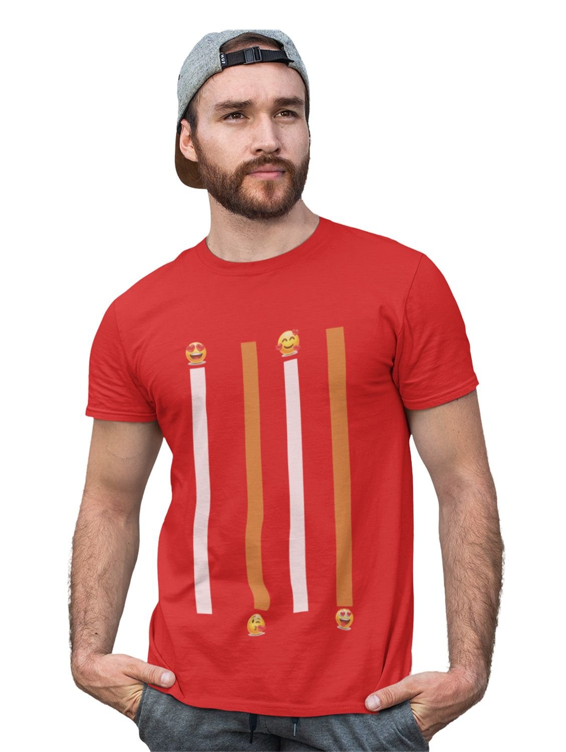 Vertical Bar Printed T-shirt (Red) - Clothes for Emoji Lovers - Foremost Gifting Material for Your Friends and Close Ones