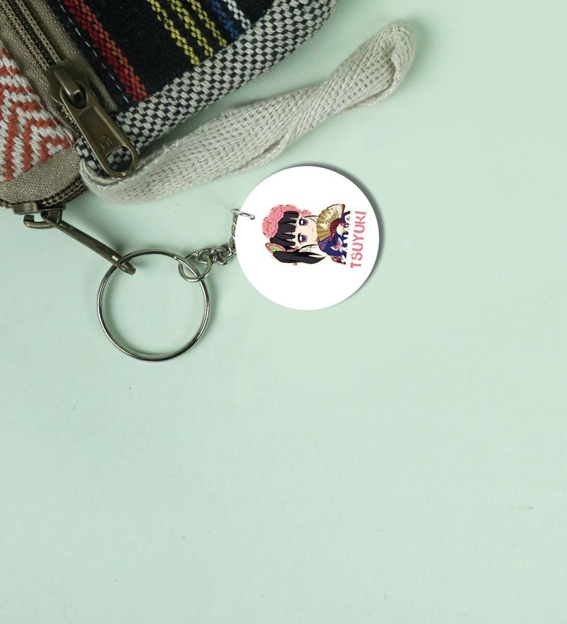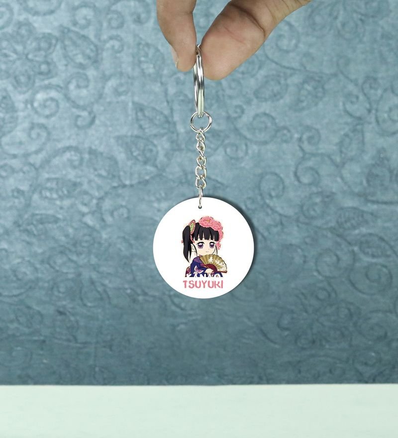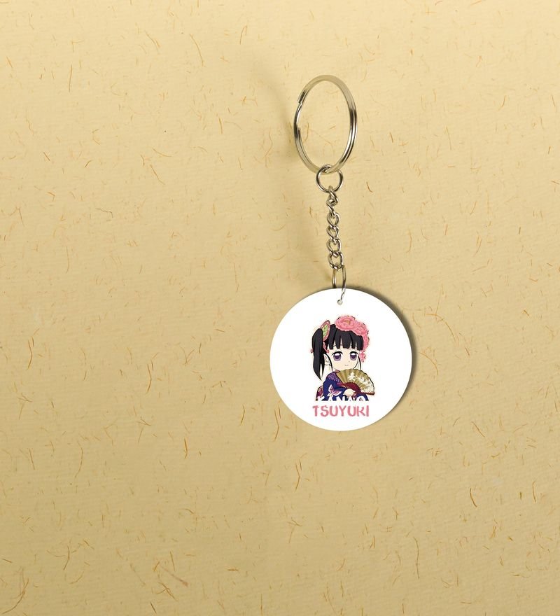 Vertical Text Anime Design Printed Round Keychain Pack of 2