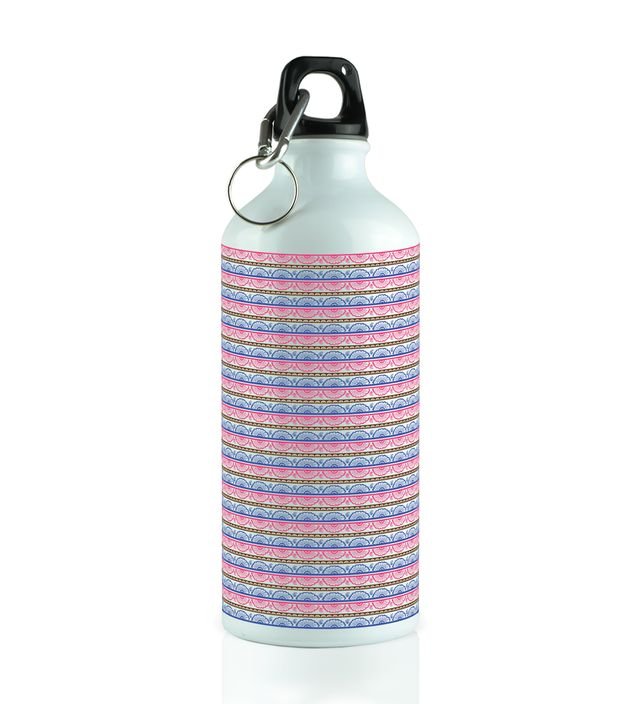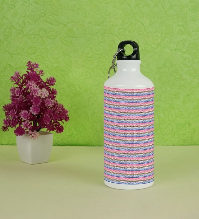 Vibrant Pink and Blue Striped Print Printed Aluminium Water Bottle 600ml