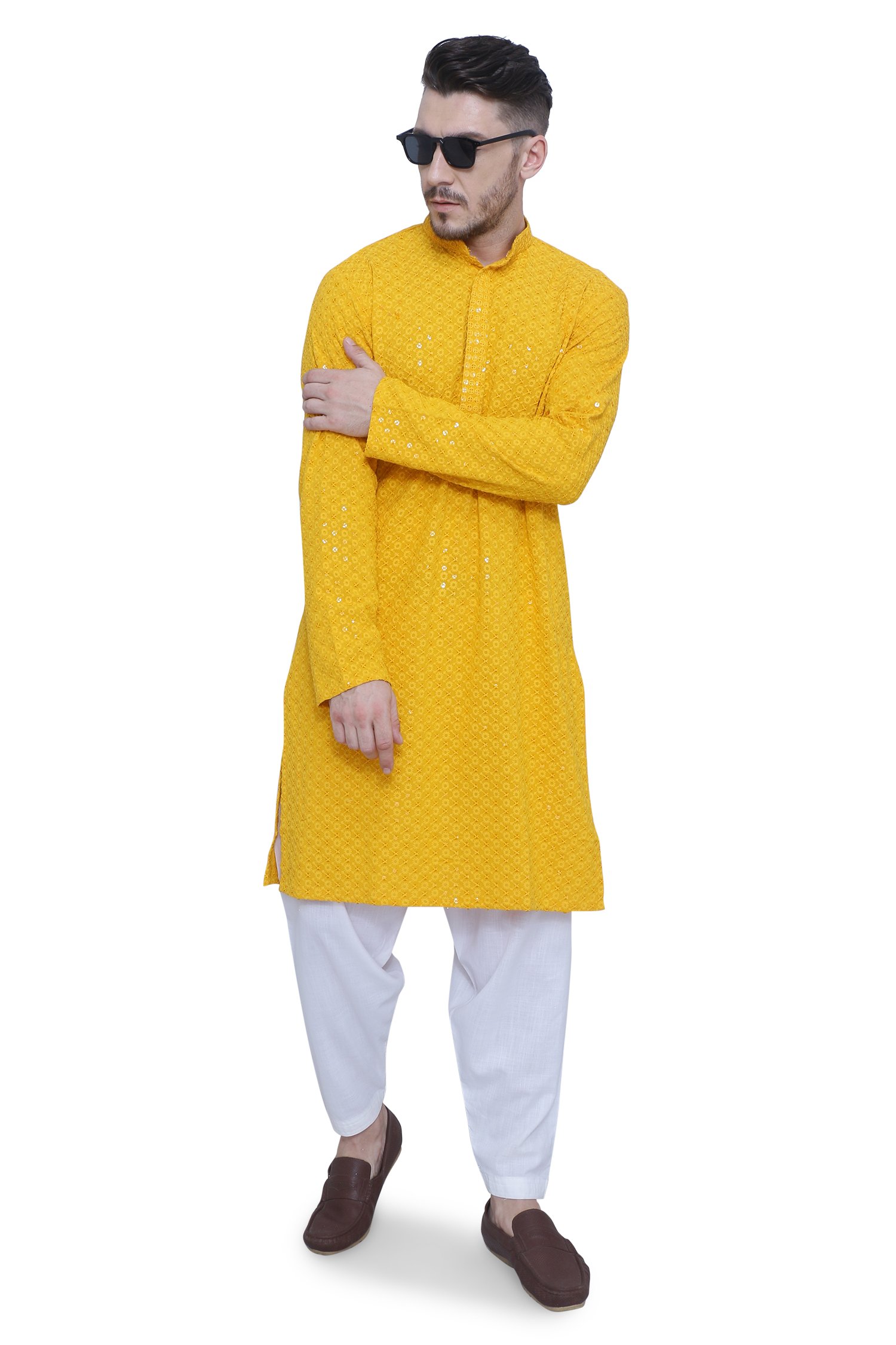 Make a bold statement with our Vibrant Yellow Chikankari Men's Kurta Set. Crafted from high-quality Chikankari fabric, this ensemble ensures unmatched comfort. The eye-catching Yellow color exudes vibrancy and style, and the intricate chikankari embroidery adds a touch of traditional artistry