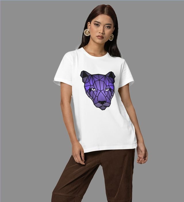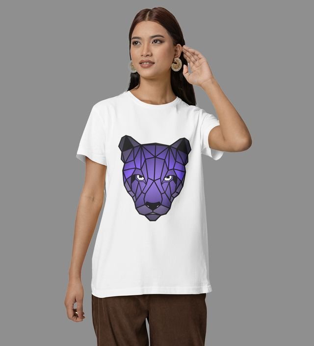 Violet Shadow Beast: Graphic Printed White T-Shirt