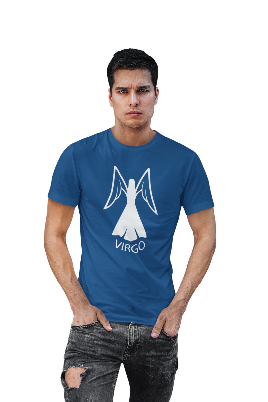 Virgo symbol (BG White)(Blue T) - Printed Zodiac Sign Tshirts - Made especially for astrology lovers people