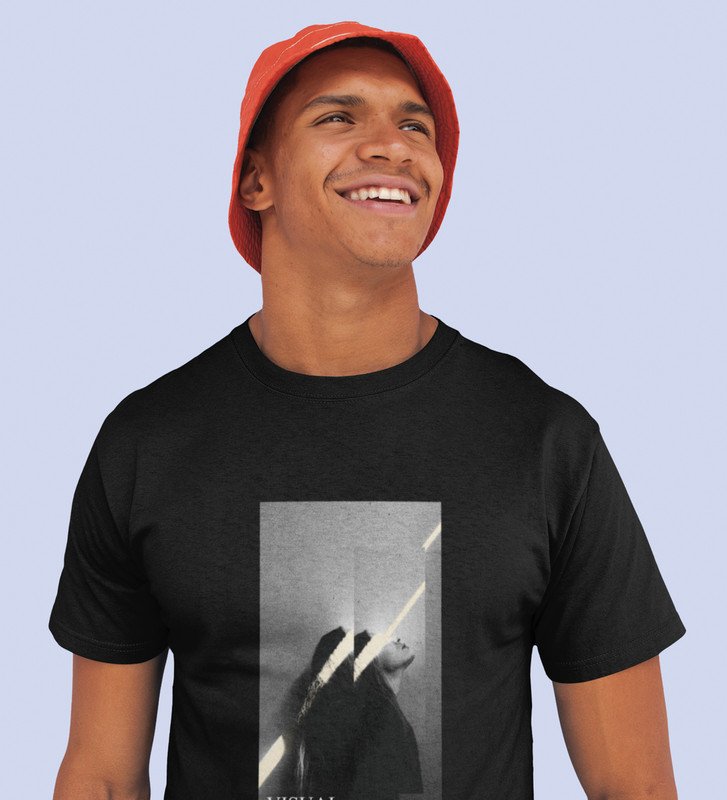 Visual Artistry, A Modern Maverick: Black Men's Oversized Tee with Eye-Catching Front Print