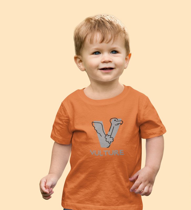Vulture, Boys Round Neck Printed Blended Cotton Tshirt (orange)