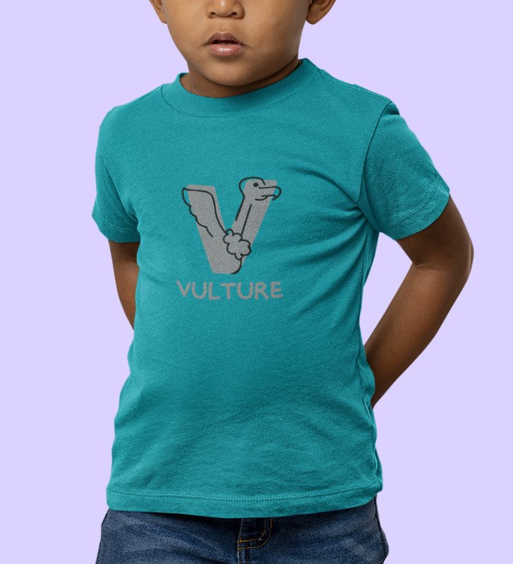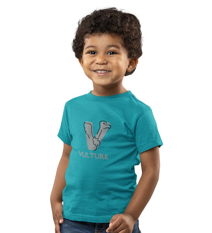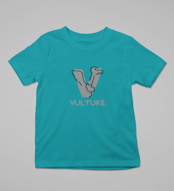 Vulture, Boys Round Neck Printed Blended Cotton Tshirt (Teal)