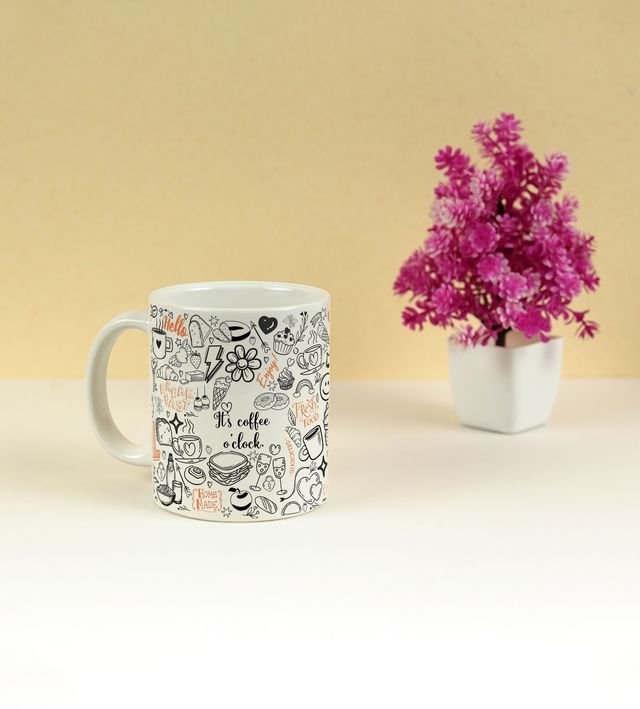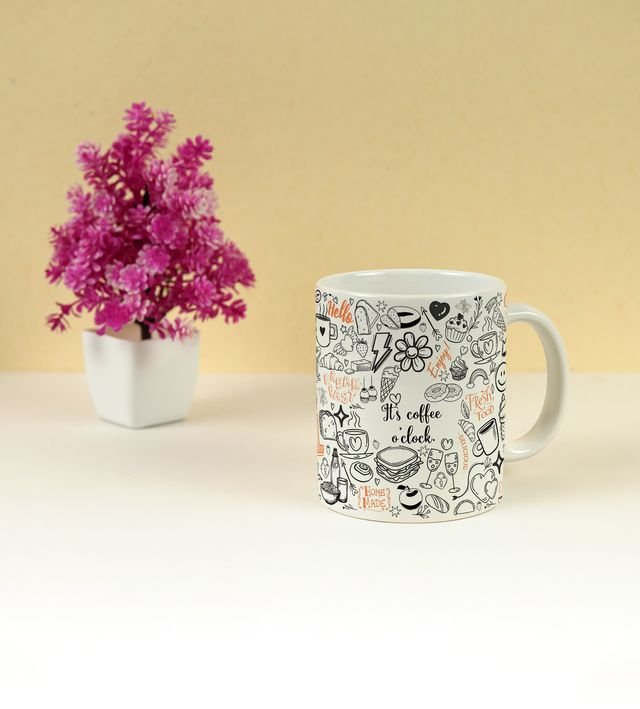Bring a little doodle magic to your tea or coffee time! This 250ml printed mug features hand-drawn sketches of all your favorite sips and snacks