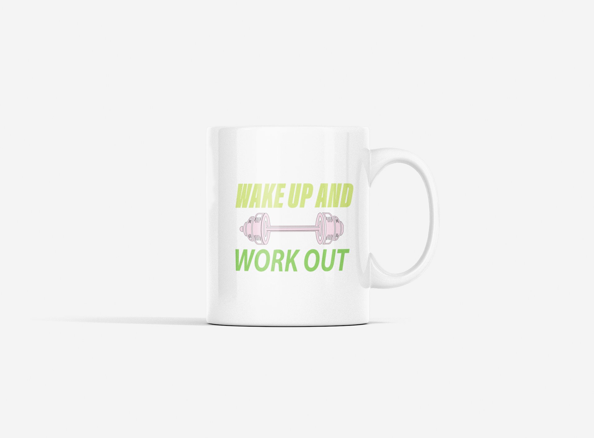 Wake Up And Work Out - gym themed printed ceramic white coffee and tea mugs/ cups for gym lovers