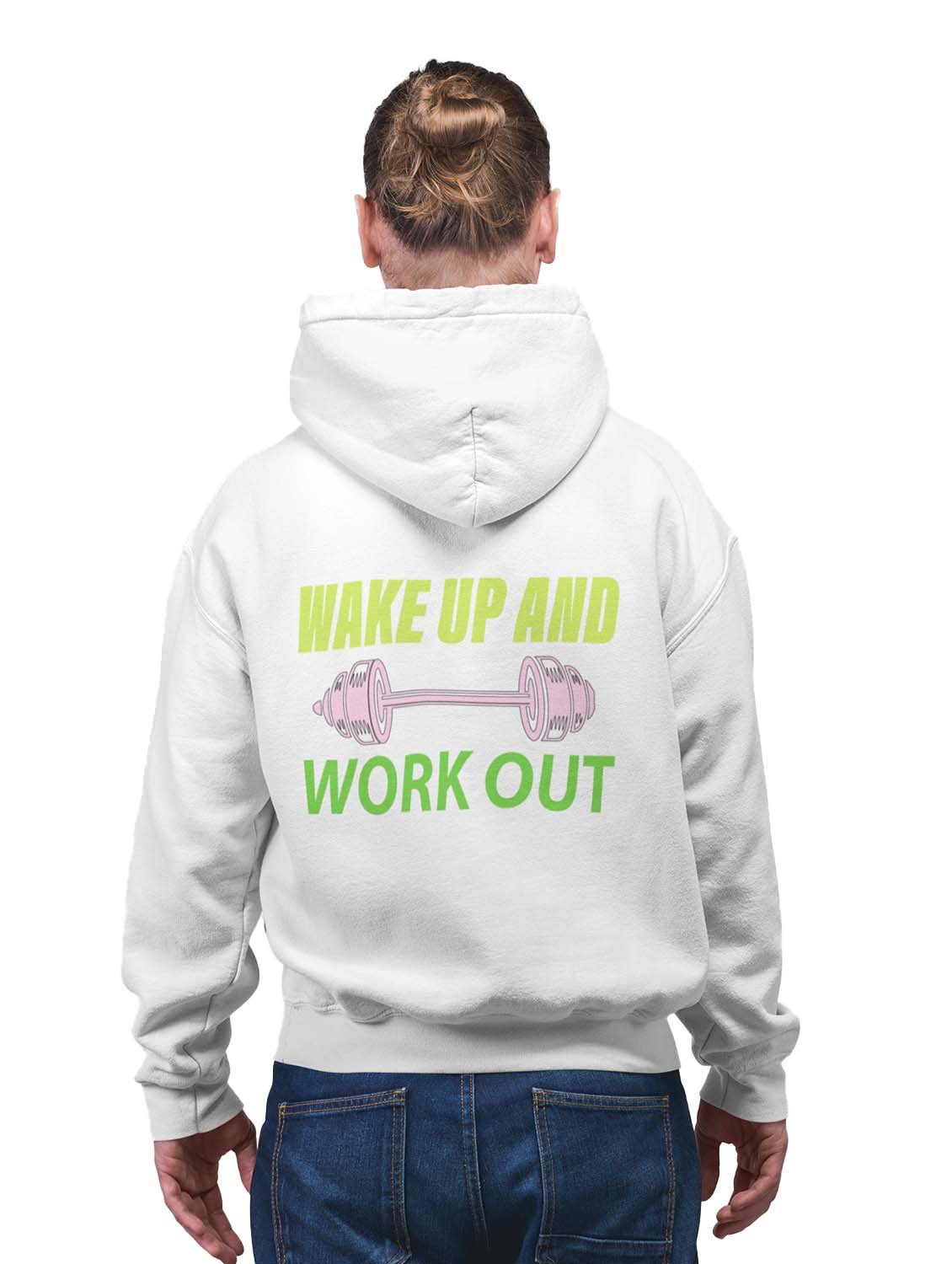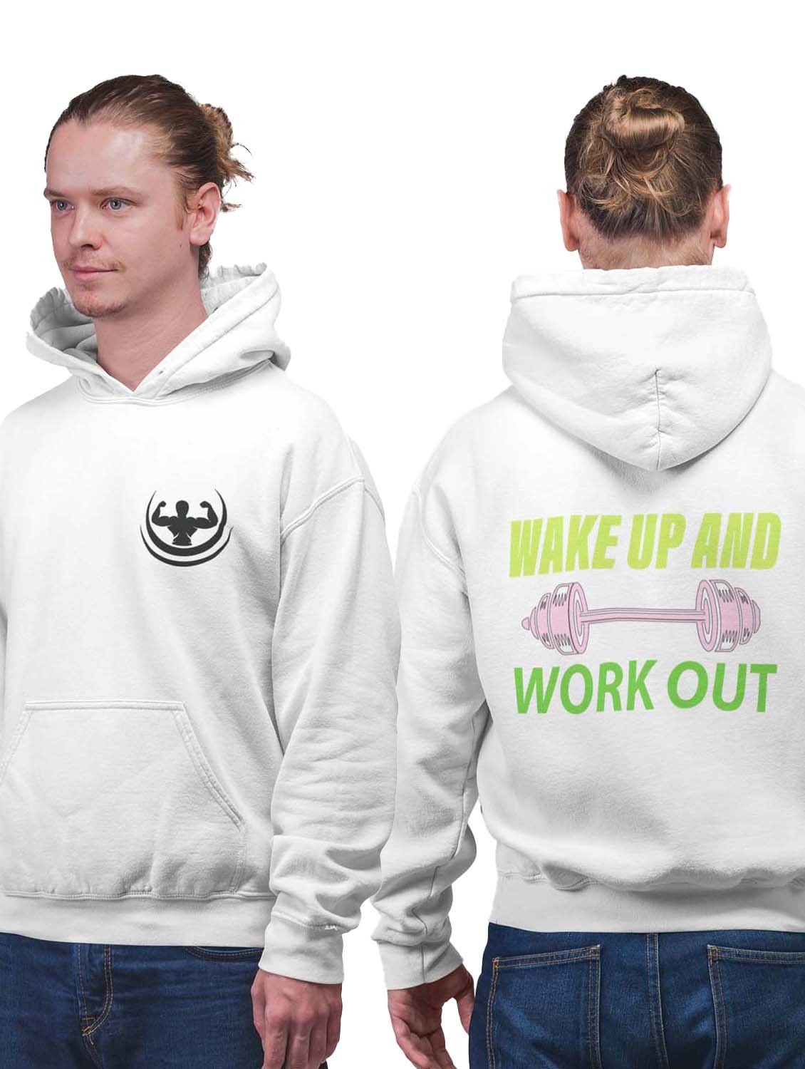 Wake Up And Work Out Text printed artswear white hoodies for winter casual wear specially for Men